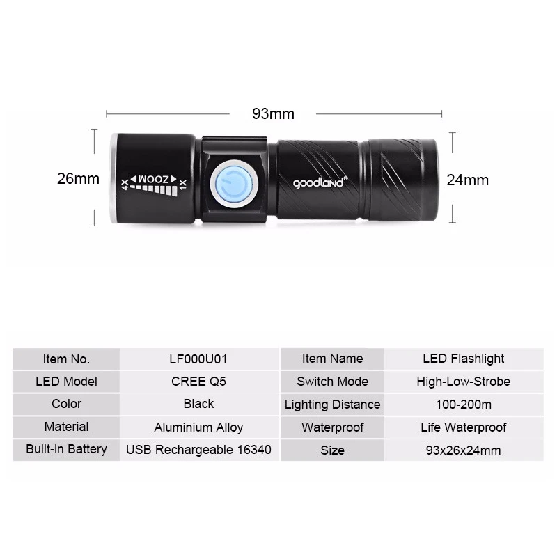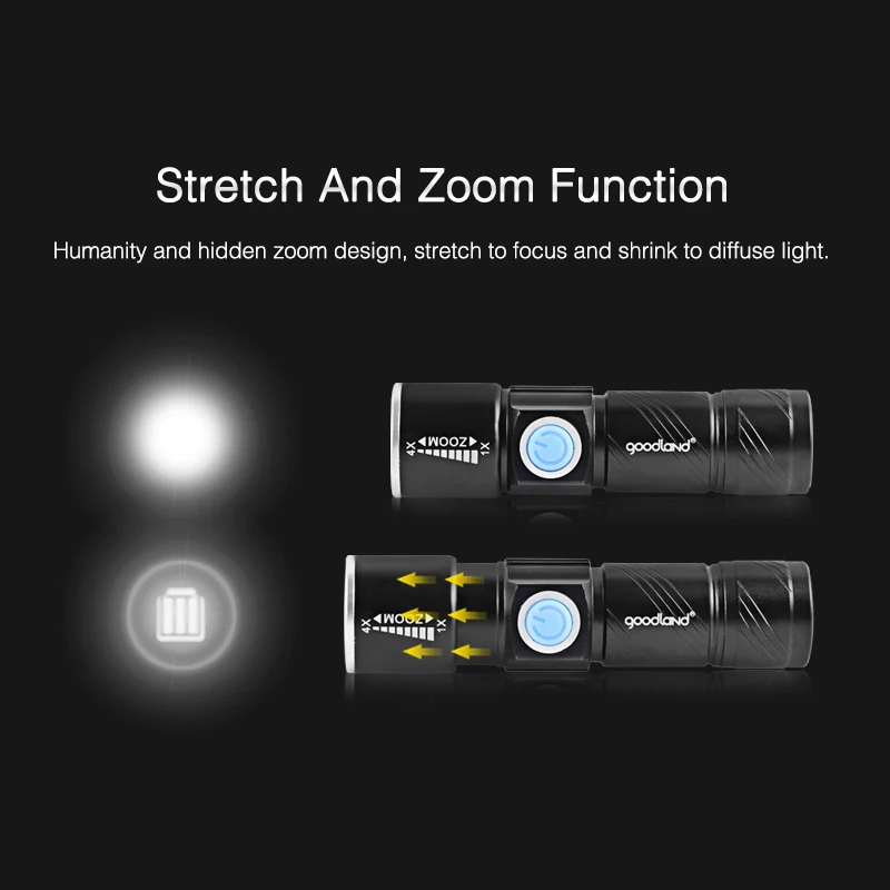 Goodland USB светодиодный фонарик перезаряжаемый светодиодный фонарь Q5 Высокая мощность батарея светодиодный фонарь удобный 3 режима масштабируемый фонарь для велосипеда