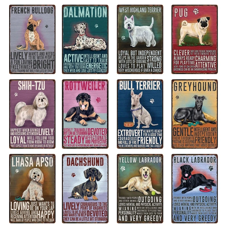 Kelly66 Собака Такса Ши Цзы Мопс бультерьер Декор Оловянная вывеска...