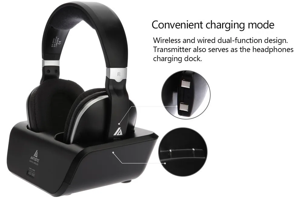 2,4 ГГц цифровые беспроводные наушники для прослушивания музыки без потери качества Ritmix использует новейшие цифровые беспроводные технологии, что позволяет вам наслаждаться музыкой и ТВ звуком в любом месте в вашем доме. Просто подключите систему к любому источнику звука, например DVD, CD, TV, VCR, Hi-Fi и радио.