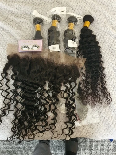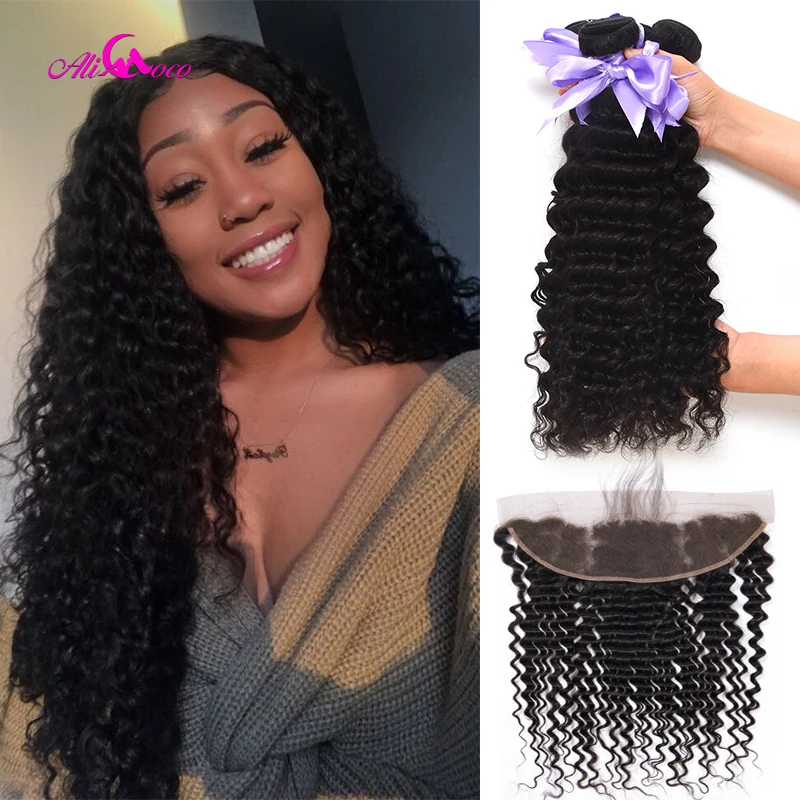 Ali Coco, Бразильская глубокая волна, фронтальная лента с пряди, фронтальная лента с ухом-ухом, пряди, человеческие волосы Remy, пучок с фронтальной лентой