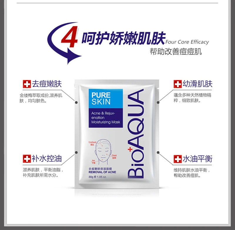 Уход за кожей BIOAQUA, женские увлажняющие маски для лица против акне, маска для жирной кожи
