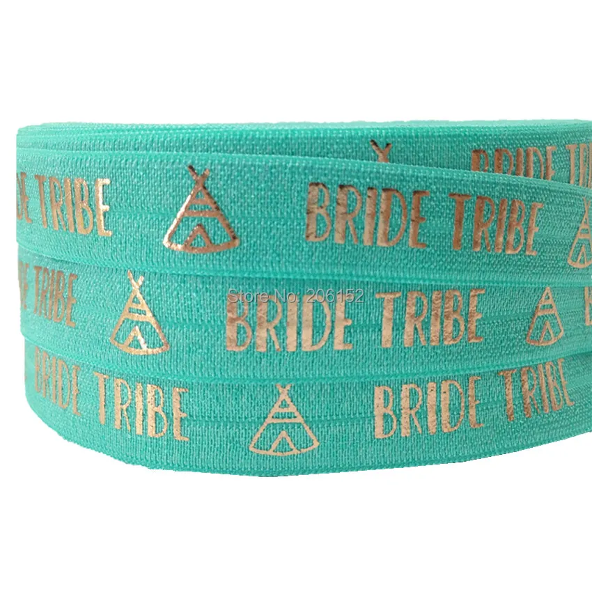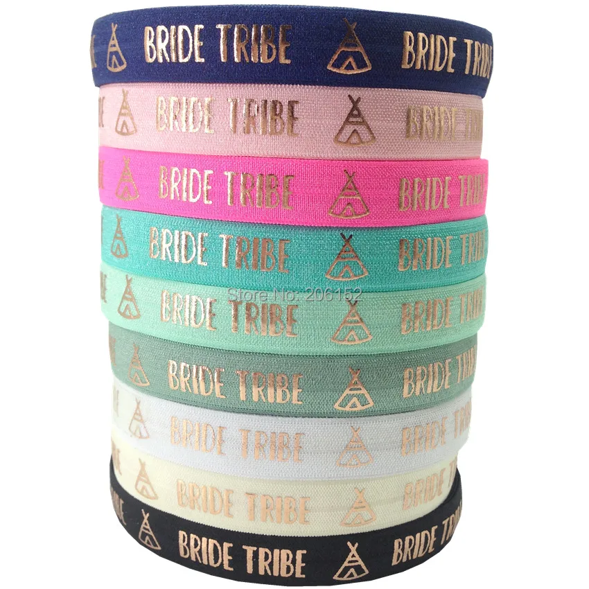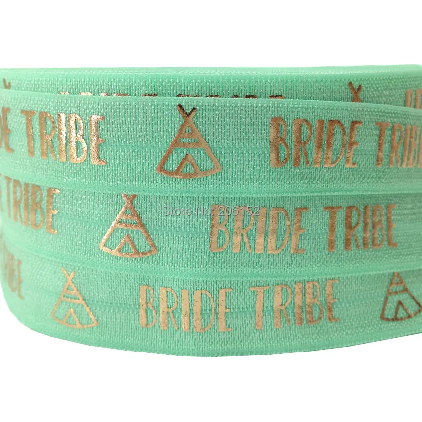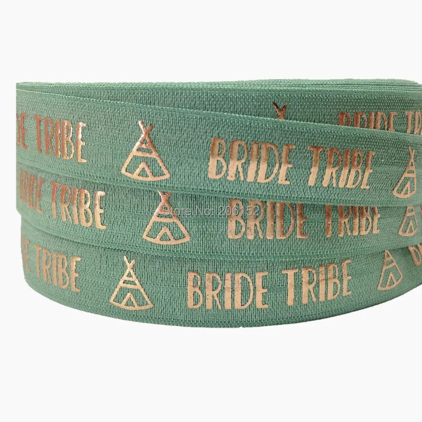 Розовая Золотая фольга, надпись «Bride Tribe», складывающаяся эластичная лента для волос на 5/8 дюйма для свадьбы, аксессуары для волос, браслет, 10 ярдов/партия