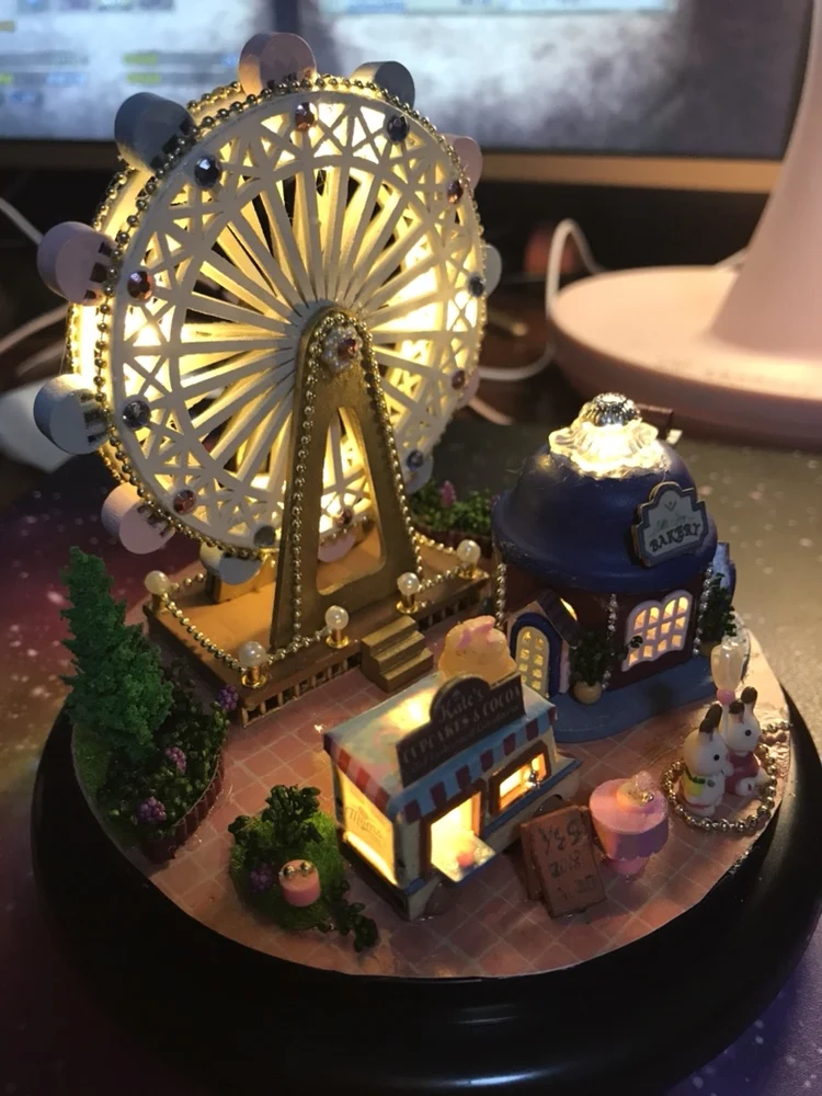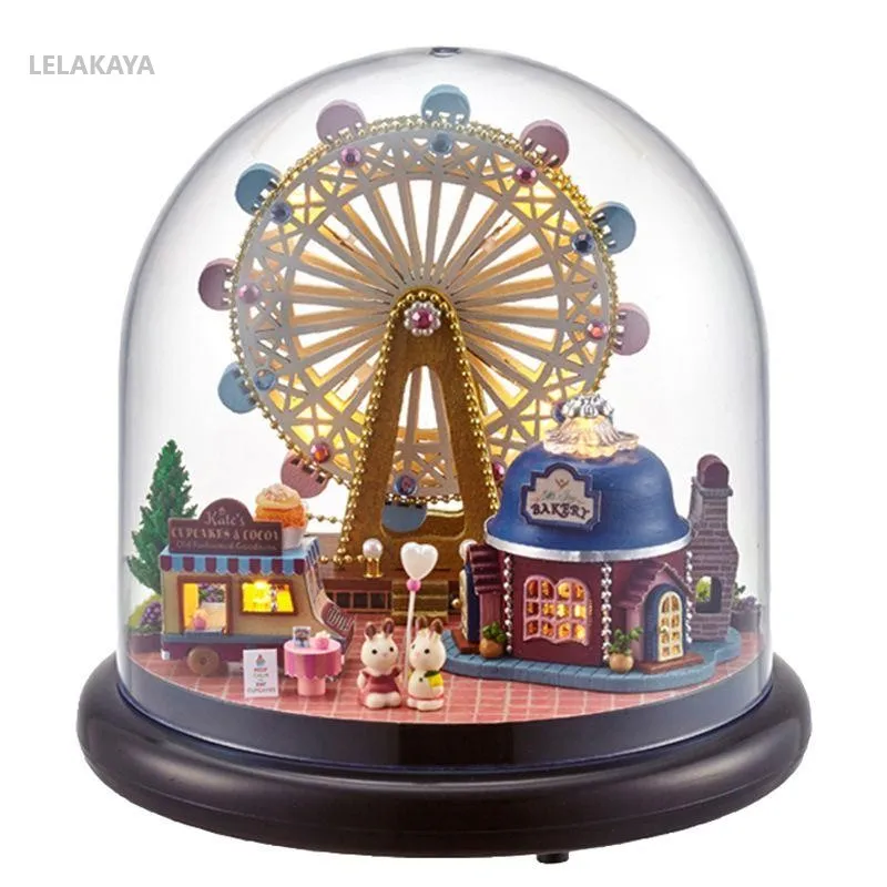 Стекло шарик для удаления пыли DIY кукольный дом колесо обозрения деревянные парк миниатюрный домашний сборки кукольный домик ручной работы парк аттракционов (комплект)