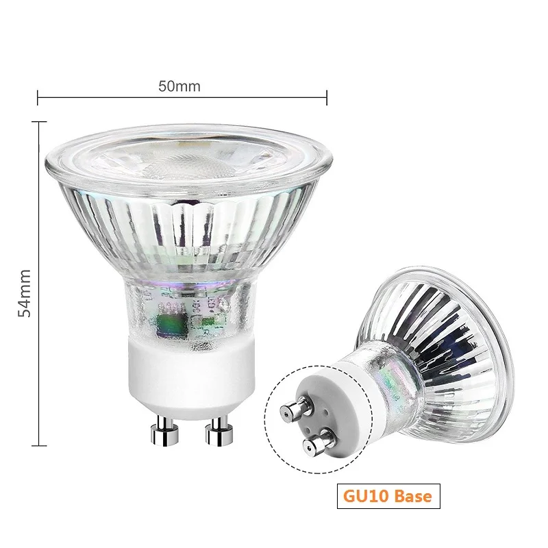 Диммируемый встраиваемый Точечный светильник GU10 5 Вт, 220 В переменного тока, MR16, светодиодный прожектор, стеклянная Светодиодная лампа COB, светодиодный точесветильник льник, цоколь GU10, цоколь GU5.3, гнездо