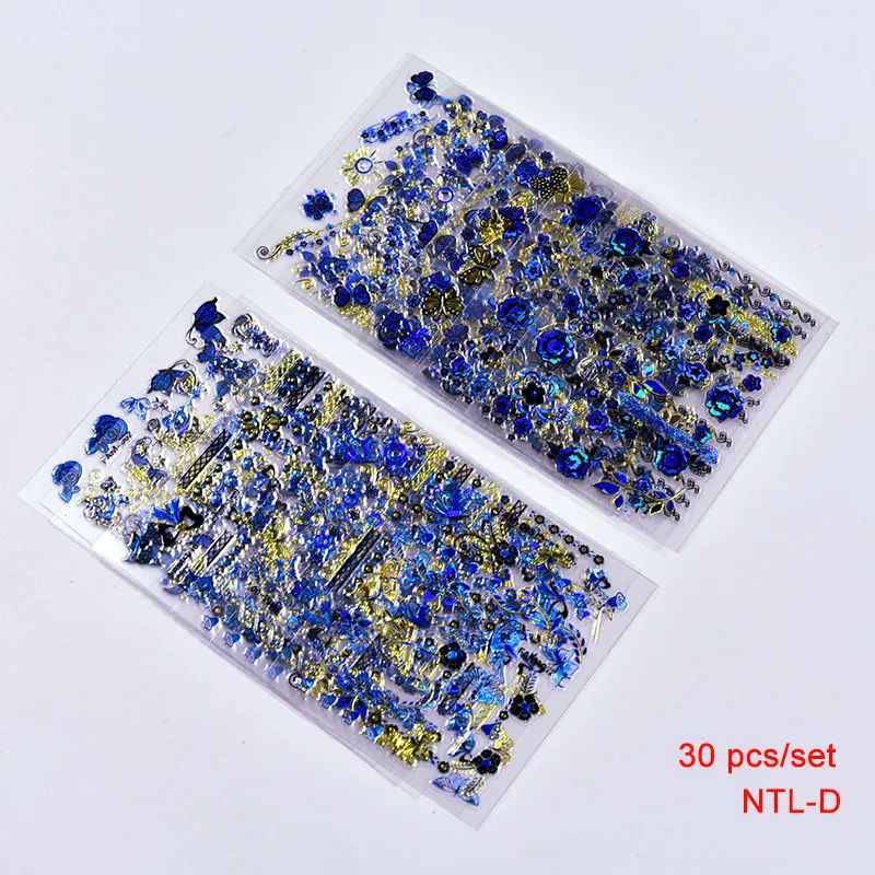 С цветочным принтомУзор тиснение амулеты бронзированные синий и золотой ногтей переводная наклейка