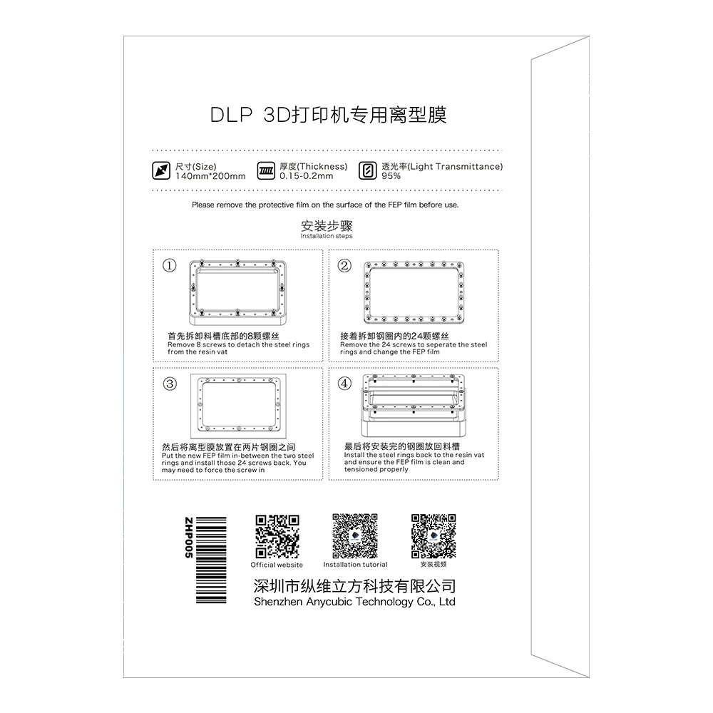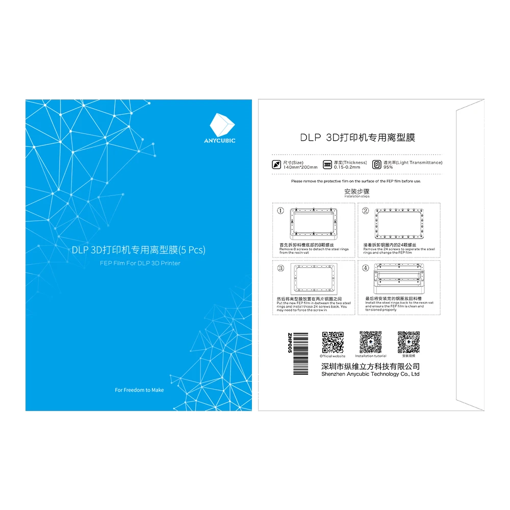 ANYCUBIC 5 шт.лот FEP пленка 200*140 мм толщина 0,15 мм детали для 3D-принтера PhotonPhoton-SPhoton Mono SE impresora 3d