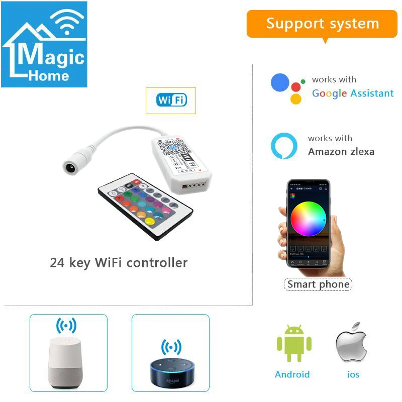 Тип: 24 ключа Wifi RGB/RGBW ИК-пульт дистанционного управления (опционально)
