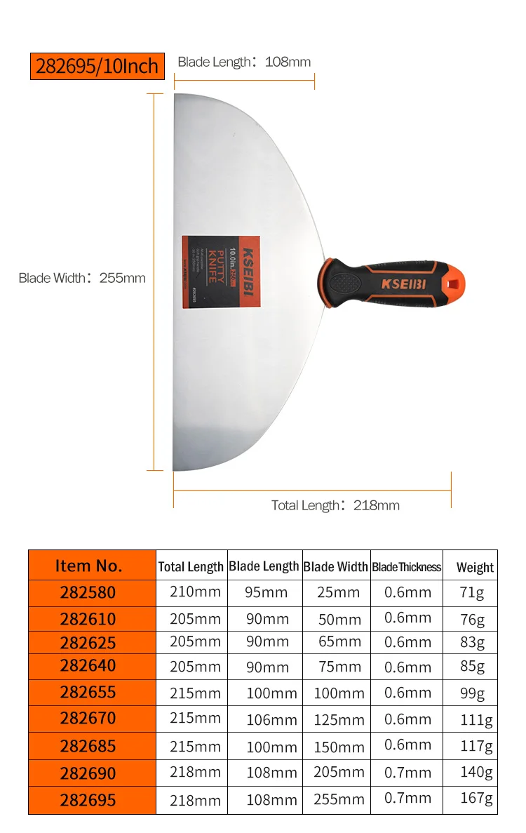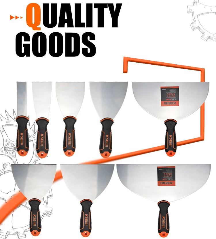 Зеркальный гибкий скребок KSEIBI 8 - 20 см из нержавеющей стали, шпатлевка, нож для гипсокартона, резиновая ручка, лезвие для чистки обоев