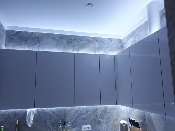 вставил в алюминиевый уголок с матовым стеклом, светит очень ярко. расположил на кухне под верхними шкафами. получилось здорово. супруга очень довольна.