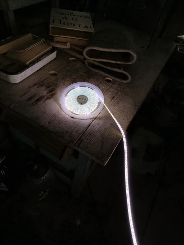 Хорошая лента. Свет теплый, мягкий. Скотч держит хорошо (предыдущая отклеивалась). Уложил в короб, чтобы не перегревалась. Единственный нюанс - спаена из кусков. Но как по мне, не критично.