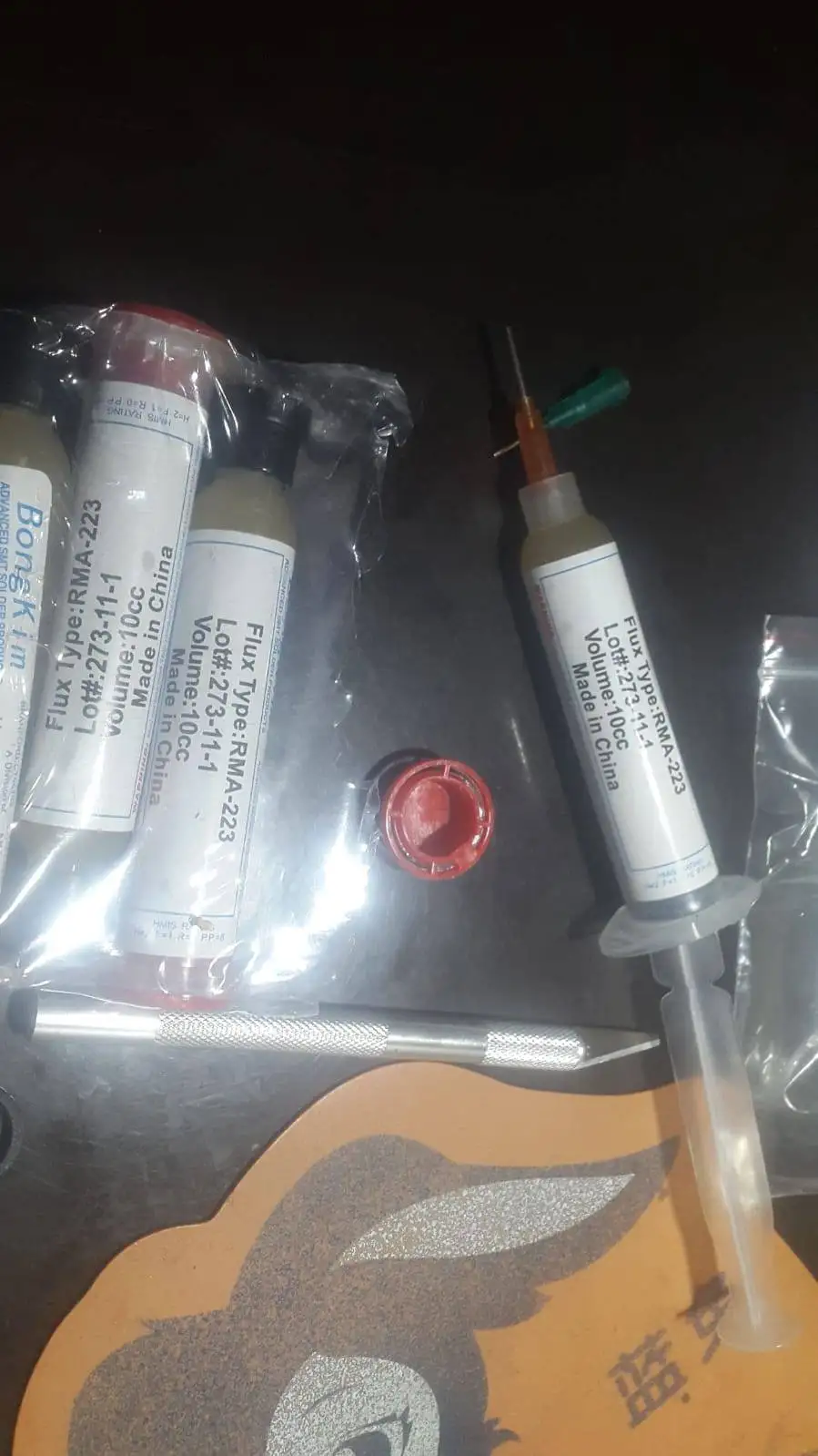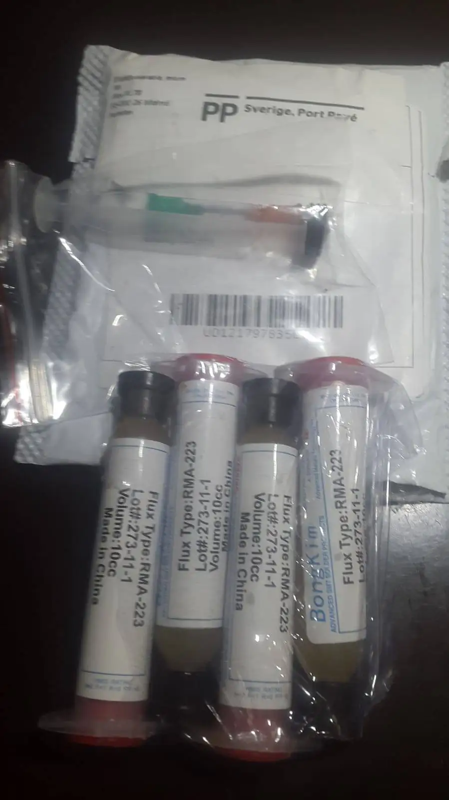 шли эти 2 шприца очень долго, но пришли. всё как на фото. флюс классный по мне.