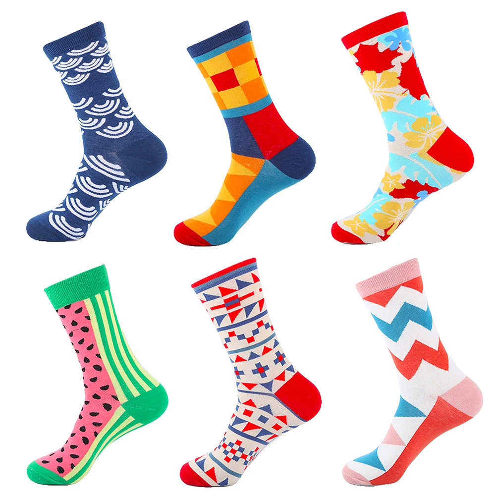 Разноцветные забавные носки YEADU, 5 пара/лот, мужские хлопковые носки с рисунком, популярные длинные носки в стиле Харадзюку, вязаные носки, свадебный подарок