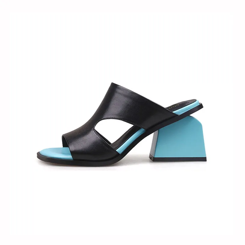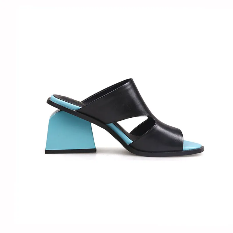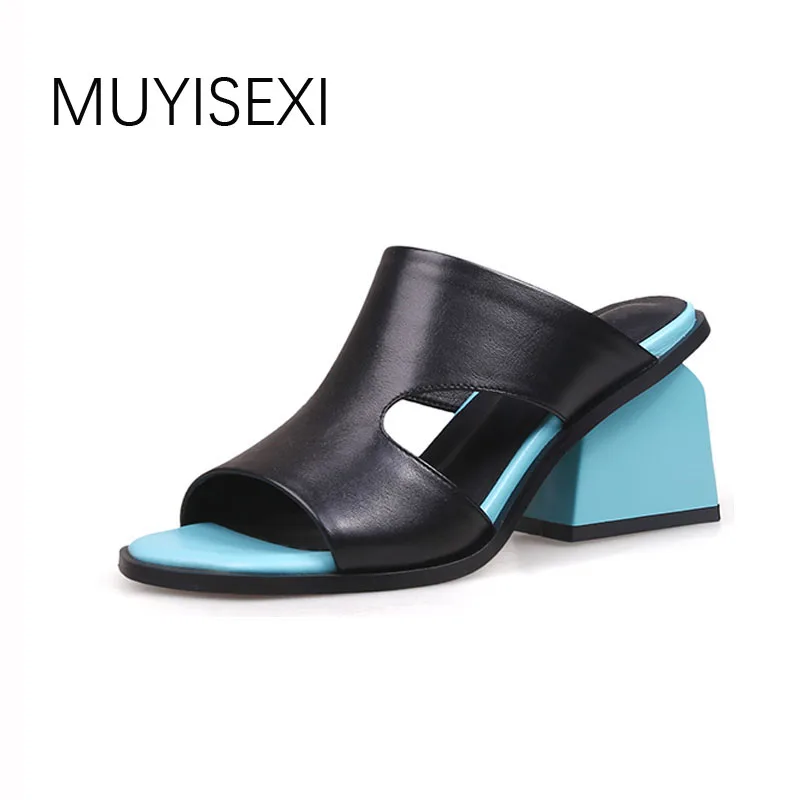Шлепанцы женские из натуральной кожи, с открытым носком, на высоком квадратном каблуке, повседневные, абрикосовые, черные HL89