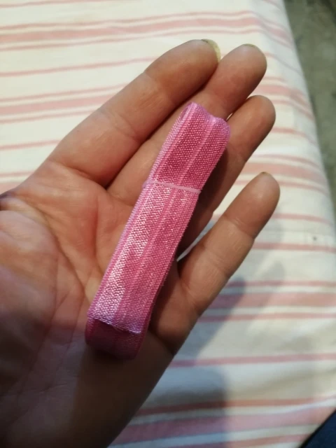 Отличная резинка розового цвета - 1см шириной и метра 2 длиной ( если честно, длину не измеряла) В хозяйстве пригодится.