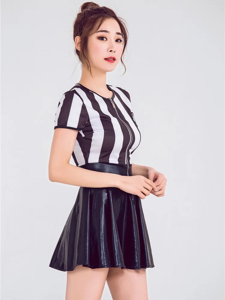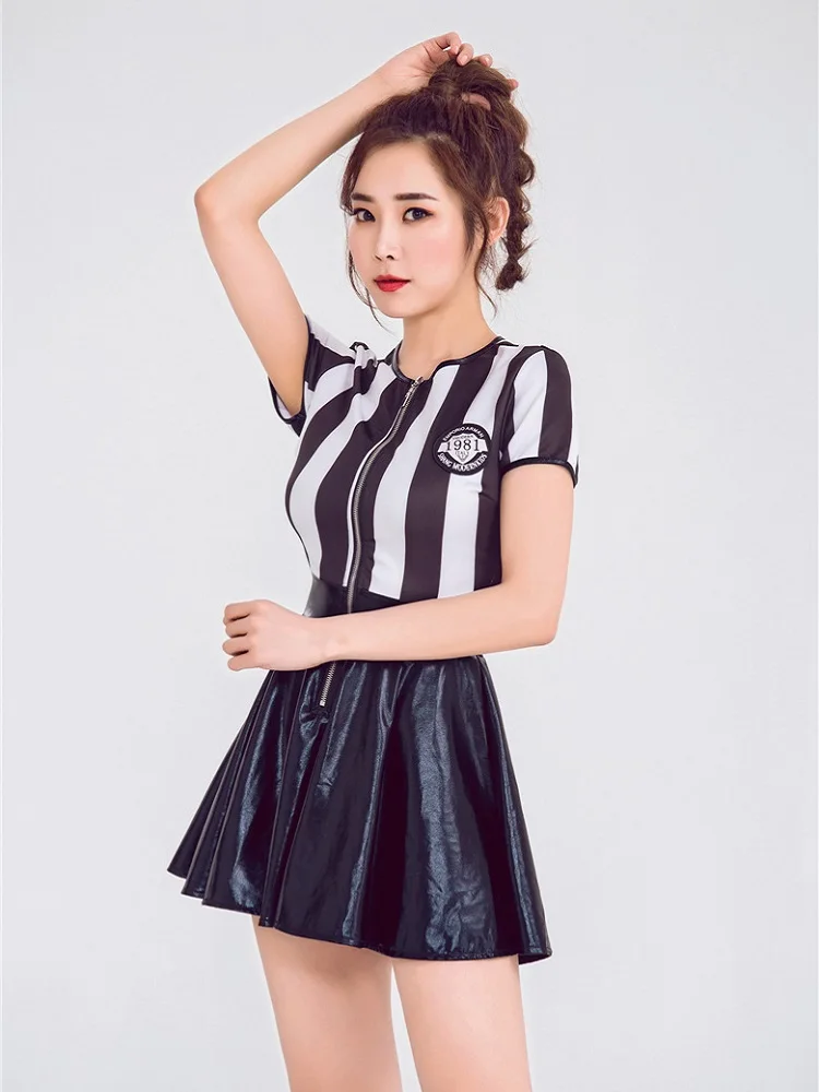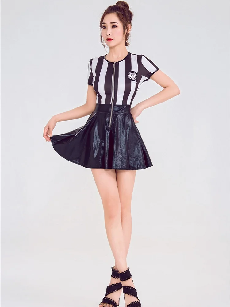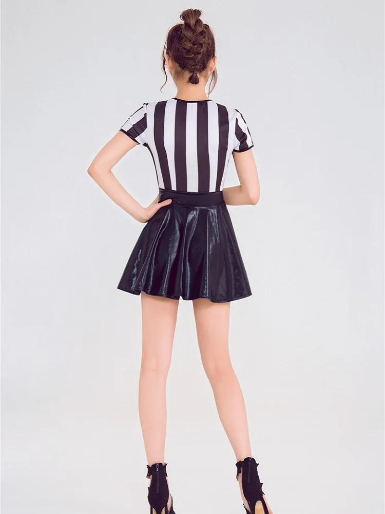 Eurocup Referee костюмы черлидера Сексуальная Футбольная форма Черлидинга для девочек черно-белая полосатая Футбольная Одежда для вечеринки для малышей