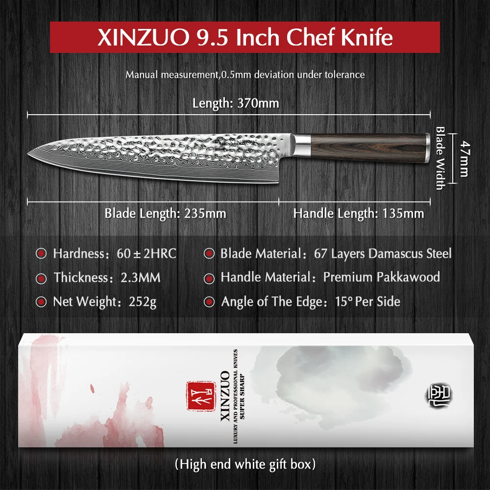 XINZUO 9,5 "нож шеф-повара японский VG10 дамасский нож шеф-повара из нержавеющей стали кухонные инструменты для приготовления пищи деревянная ручка Pakka