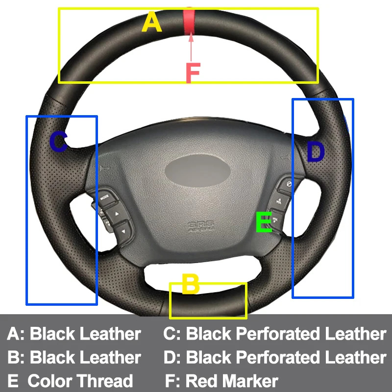 Чехол рулевого колеса автомобиля для ручного шитья, красный маркер ...