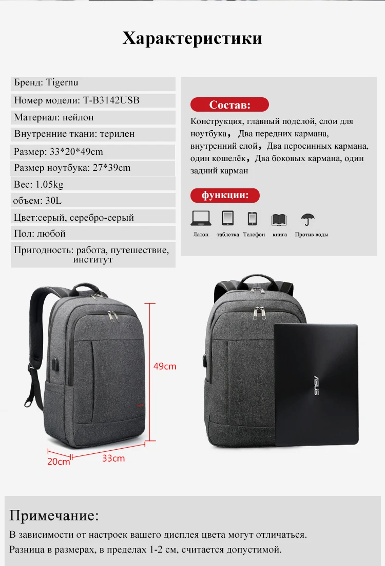 Все нормально. Товар соответствует описанию. Качество соответствует. Беру уже второй рюкзак этого производителя.
