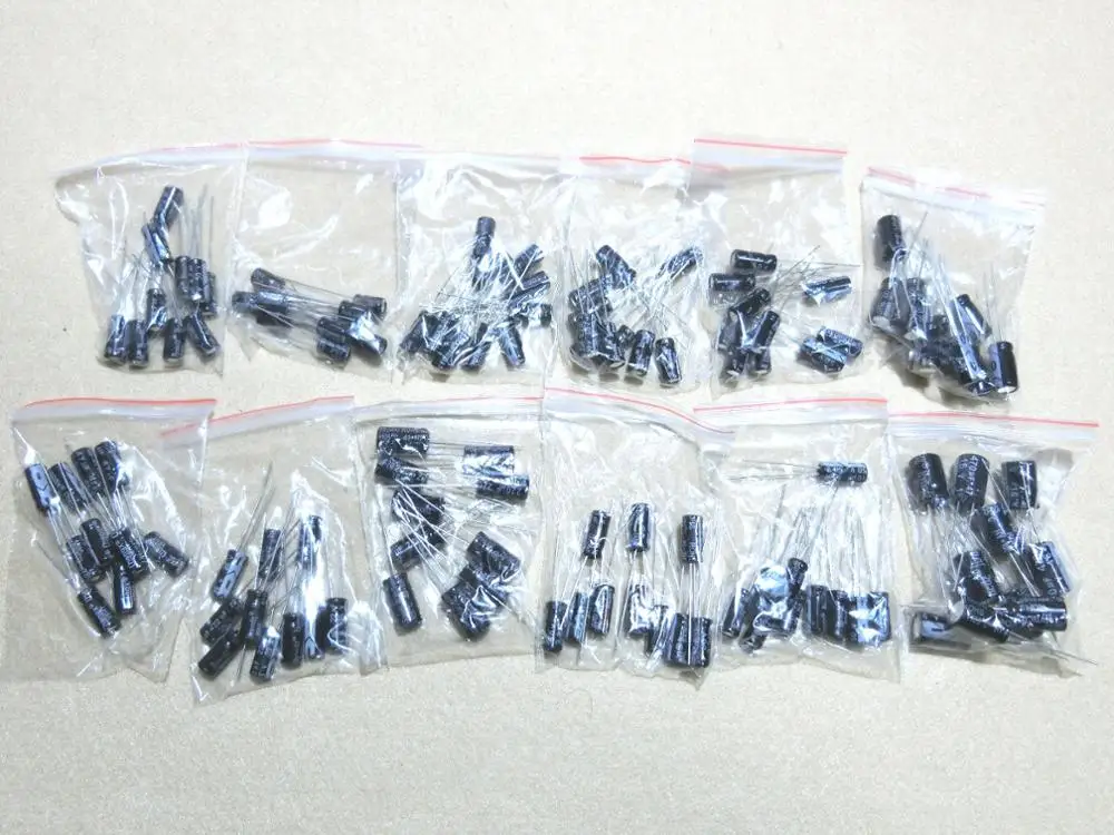 12 значение 1 мкФ-470 мкФ DIY набор конденсаторов электролитический набор различных конденсатор, 16В, алюминиевая крышка, 25В с алюминиевой крышкой, 50В 1 мкФ 2,2 мкФ 3,3 мкФ 4,7 мкФ 10 мкФ 22 мкФ 33 мкФ 47 мкФ 100 мкФ