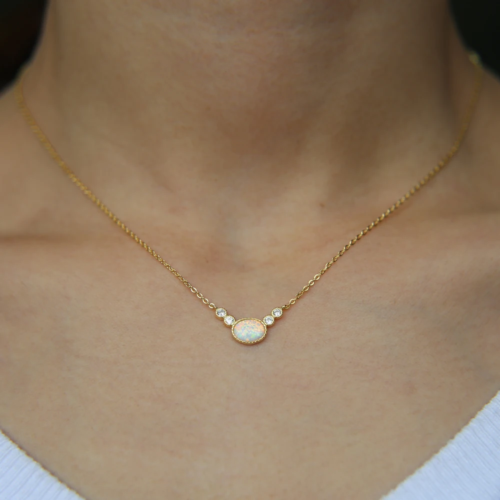 2021 Милая летняя яйцевидной формы круглые cz камень опал ожерелье ...