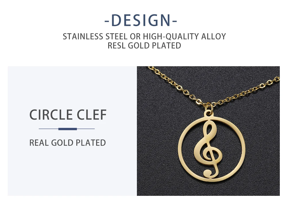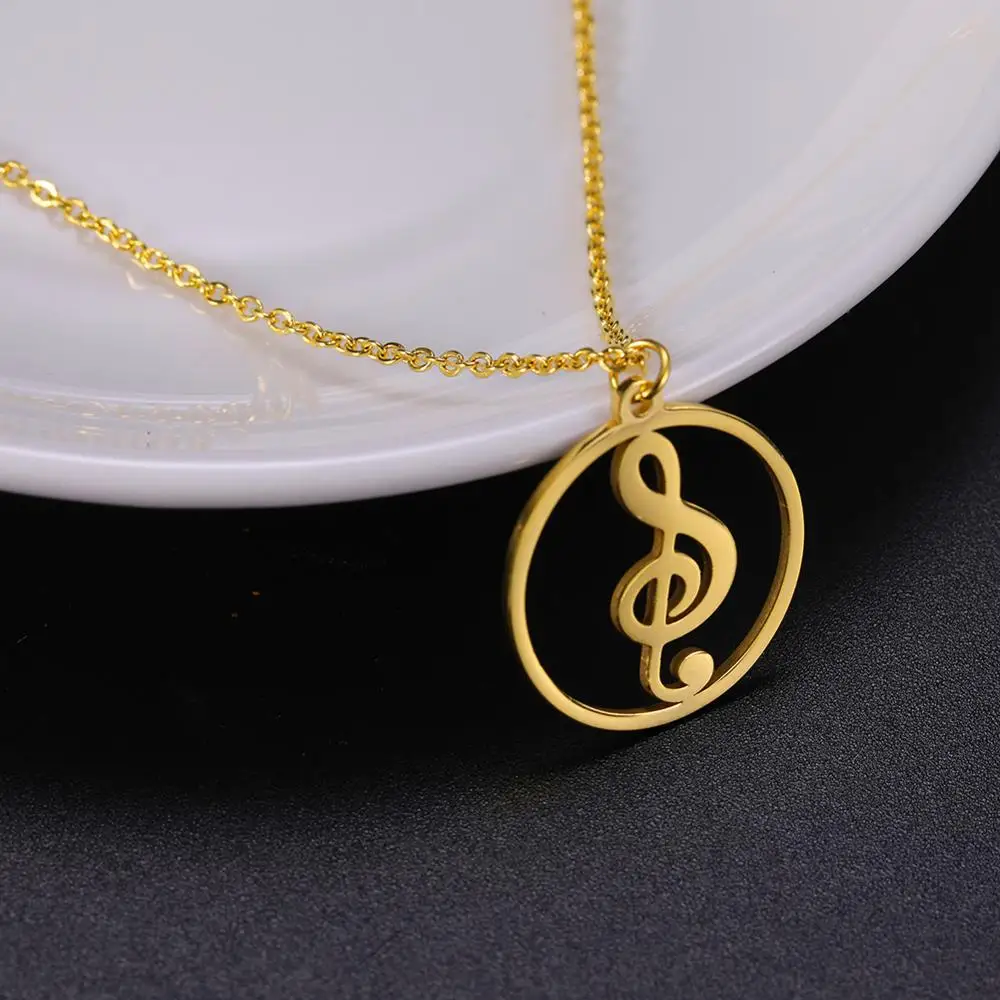 Музыкальная нота, тройной музыкальный символ, подарочное ожерелье с ключом G, золотого цвета, нержавеющая сталь, цепочка в виде змеи, кулон для женщин и мужчин, ювелирные изделия