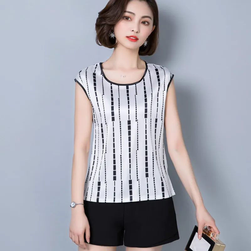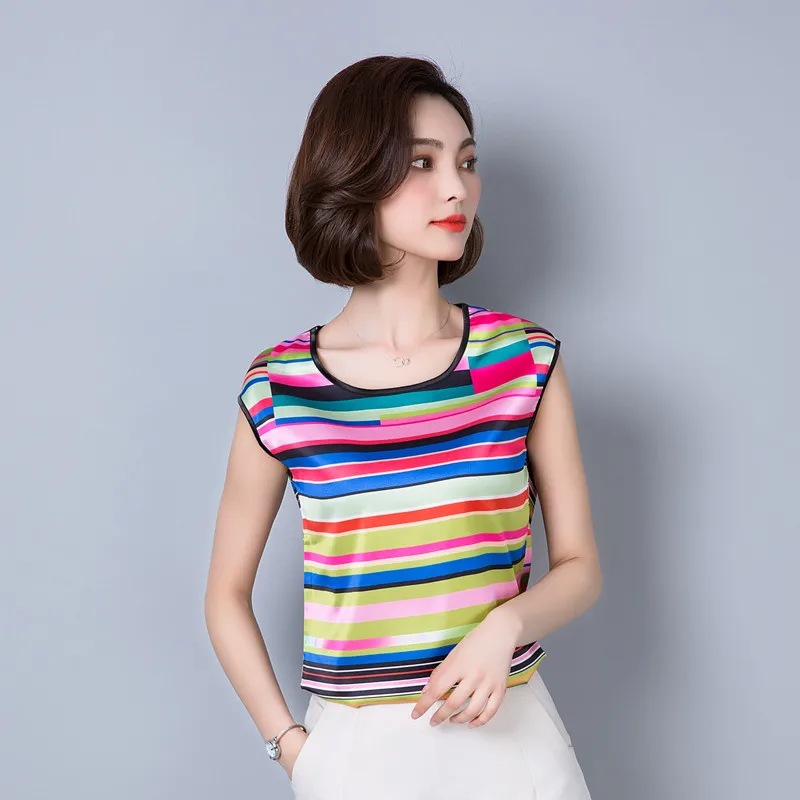 2018 модная шифоновая женская одежда без рукавов геометрический полосатый плюс размер 5XL Женская рубашка блузка женские топы блузок D733 30