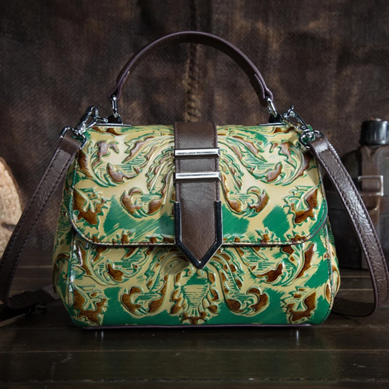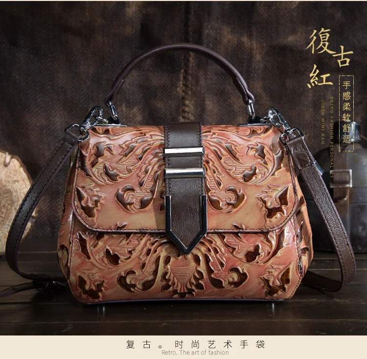 Женская сумка-мессенджер из натуральной кожи, винтажная сумка через плечо с тиснением и кисточкой
