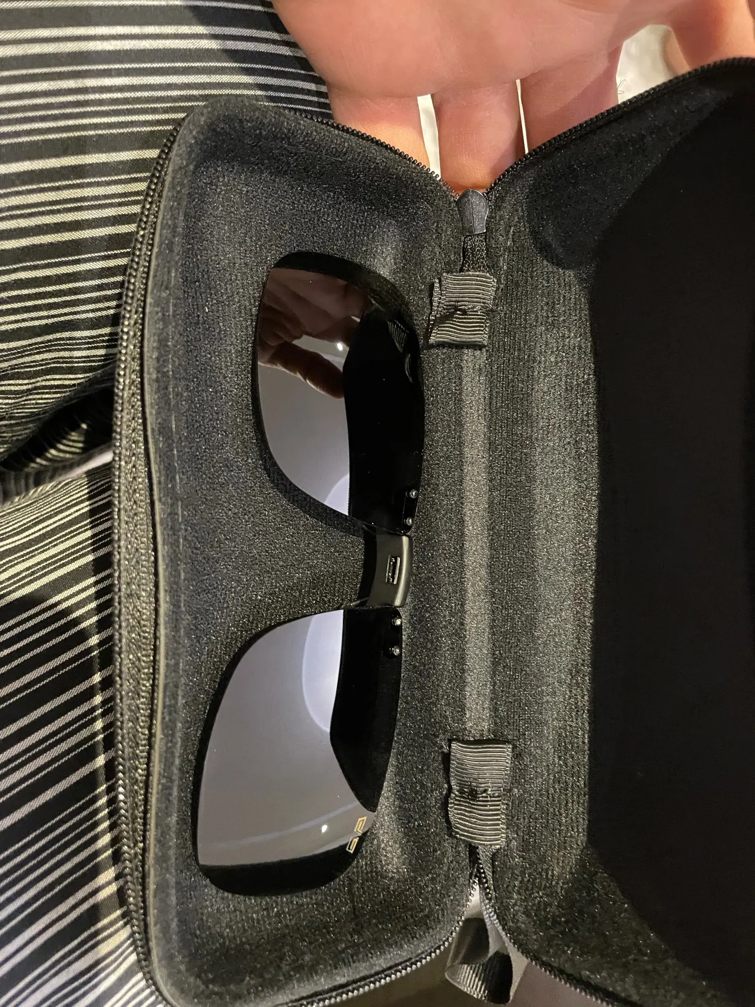 В целом покупкой доволен. Стоит учитывать, что крепления солнцезащитной накладки при одевании на безоправные (rimless) очки могут порой попадать ровно на болтики крепления оптических стекол возле переносицы, что создает некоторую сложность нормально закрепить накладку на очках. Я эту проблему решил, подогнув лапки клипсы, но это сделать не совсем просто, так как они достаточно крепкие (жесткие) не смотря на то что тонкие. Также хотелось бы лапки крепления накладки подлиннее, это позволило бы еще лучше держаться на очках. А так видно что сделано добротно.