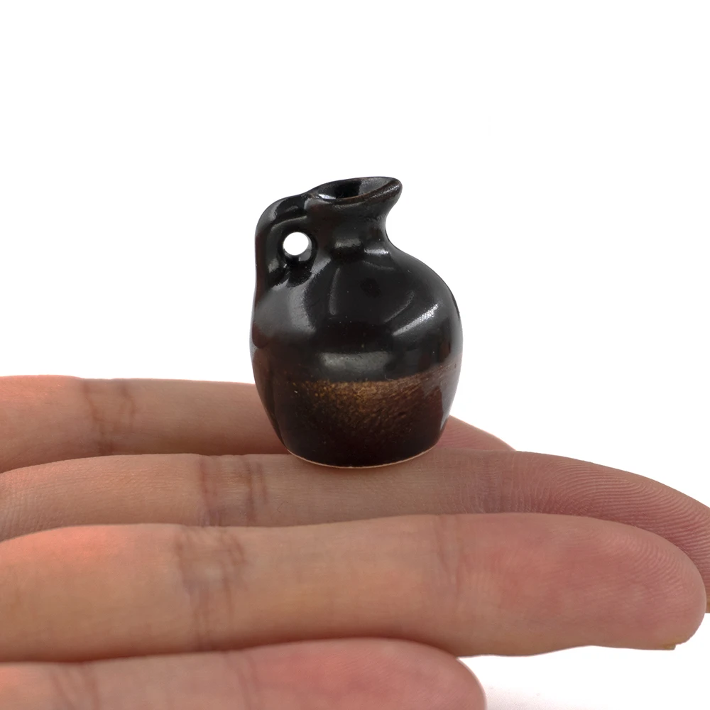 Миниатюрные аксессуары для кукольного домика 112, черный керамический цветочный горшок, имитация вазы, игрушки для украшения кукольного домика