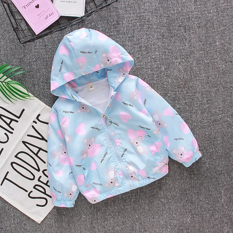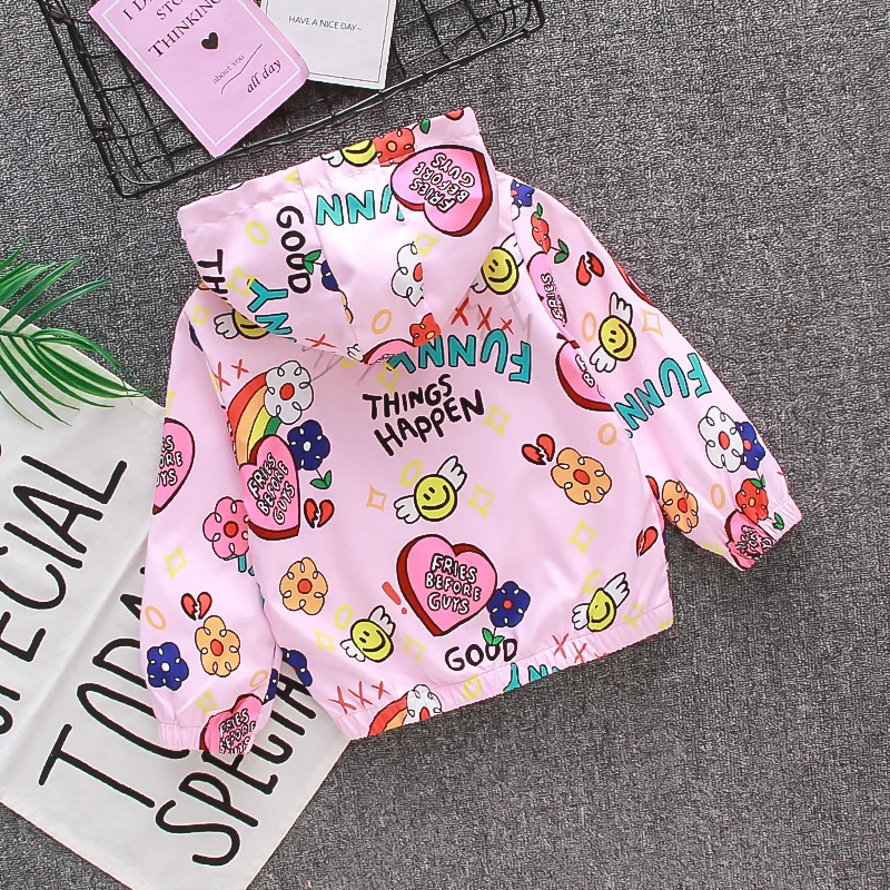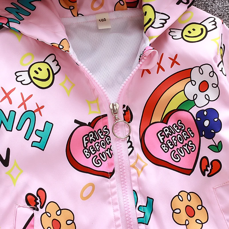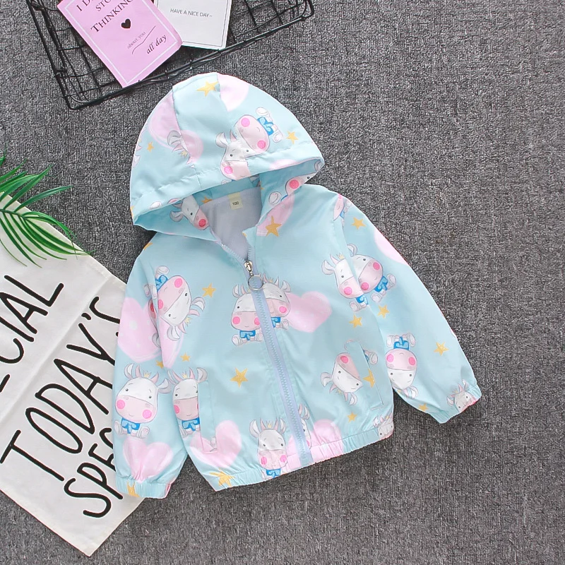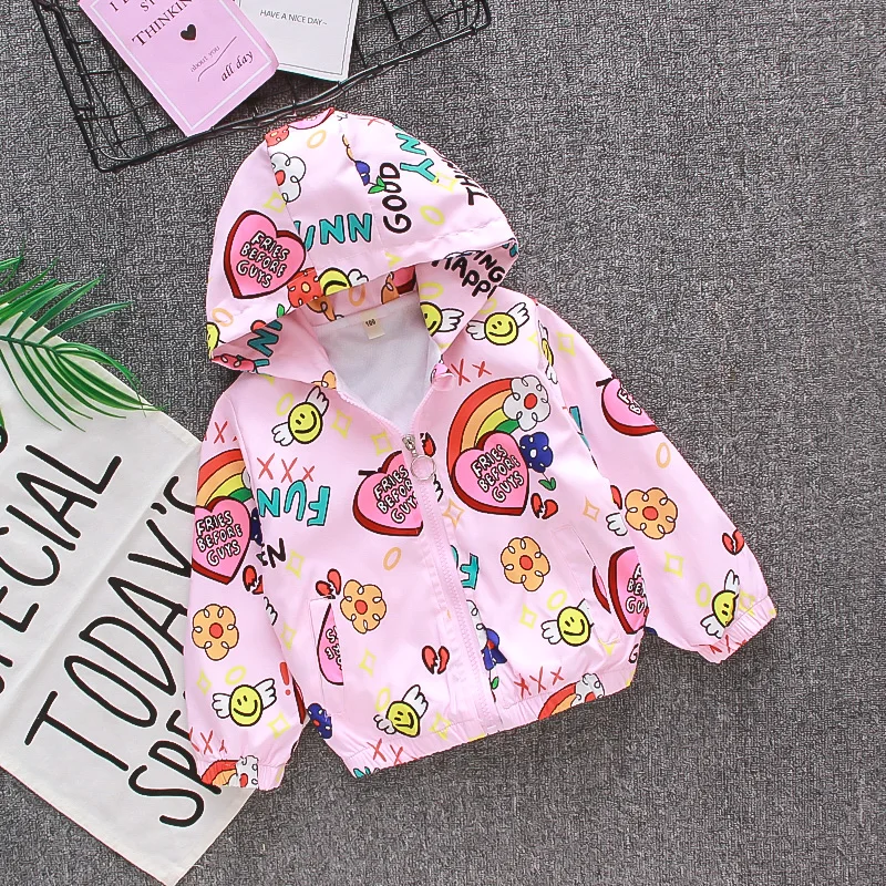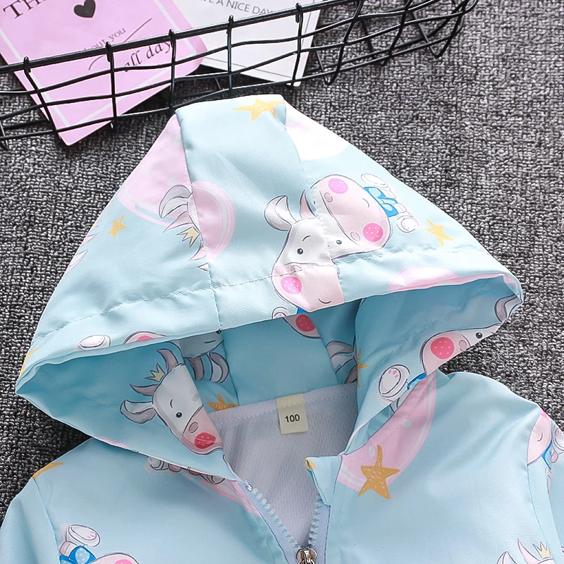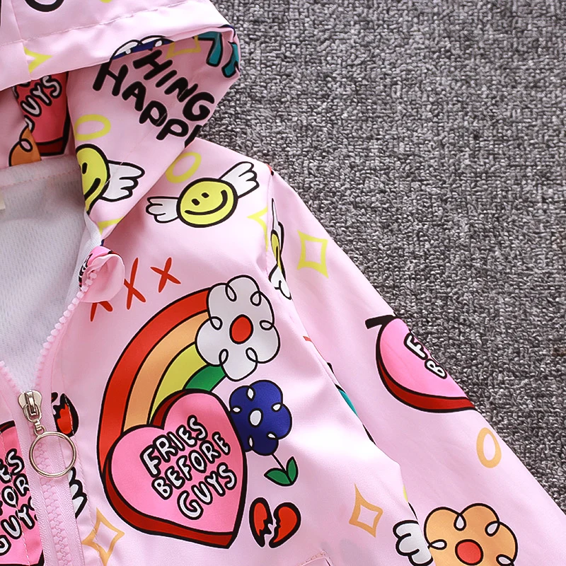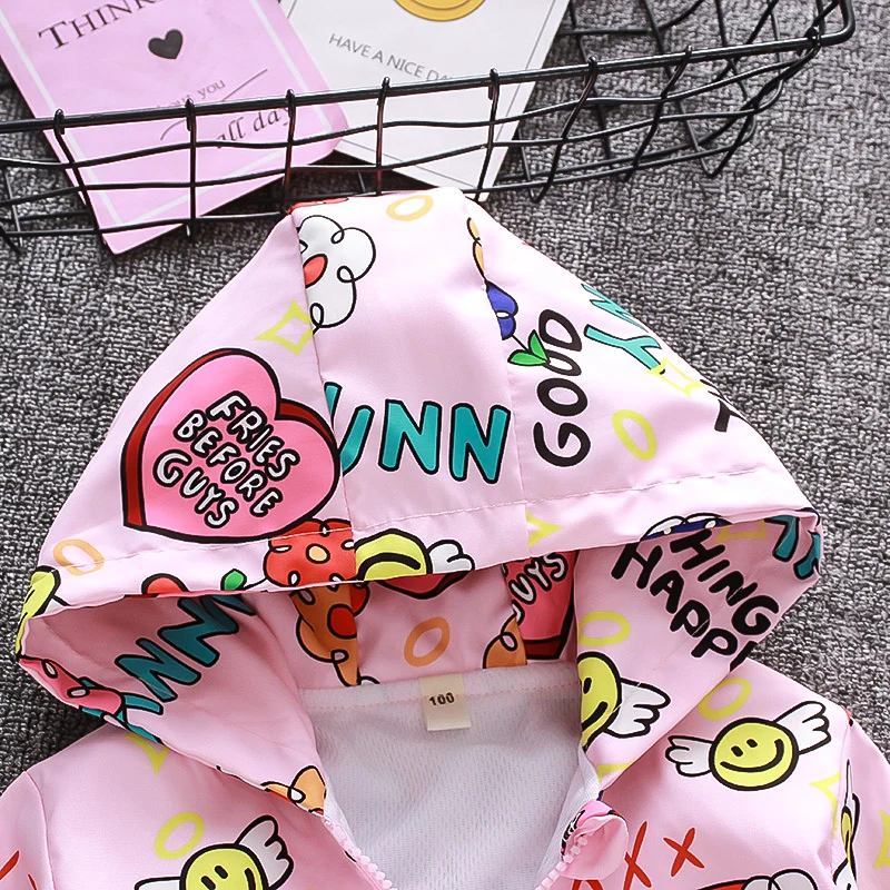 Ветровка с капюшоном для мальчиков и девочек, мультяшный плащ с длинным рукавом, верхняя одежда на весну и осень