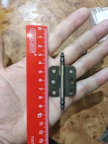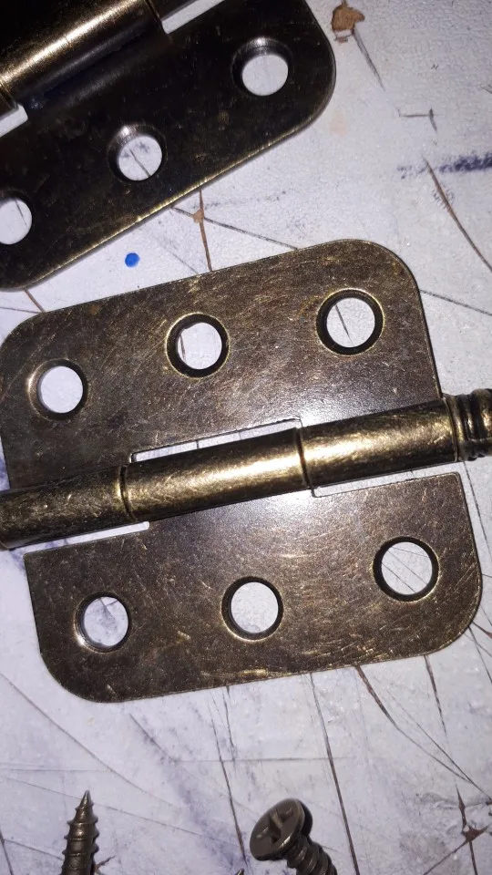 Заказывал 20 шт, получил 19, и одна сломанная (т.е. осталось18) .На антикварную бронзу совсем не похоже (на фото другие петли). Часть похожа на блестящие жестянки, часть на ржавые гвозди.