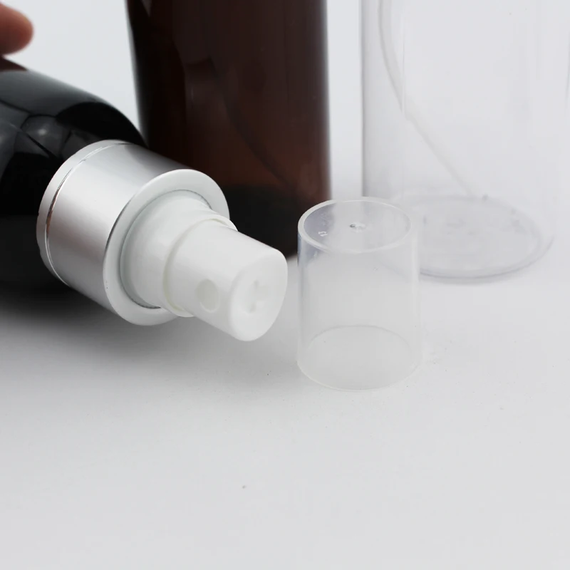 Ёмкость: 120 мл Размеры: 161x39mm Горлышко бутылки: R24 Материал: ПЭТ + ПП (алюминий) Цвет: прозрачный/коричневый/черный флакон с белым насосом/прозрачный насос/черный насос