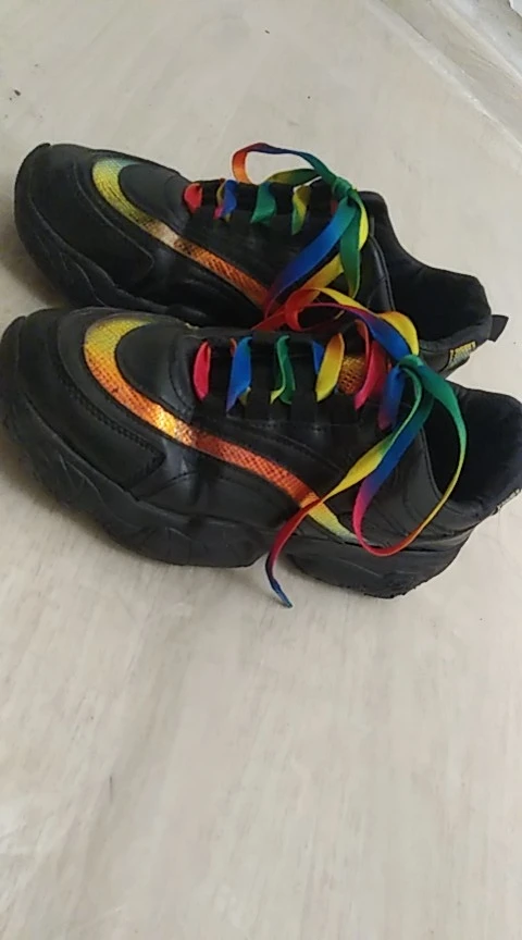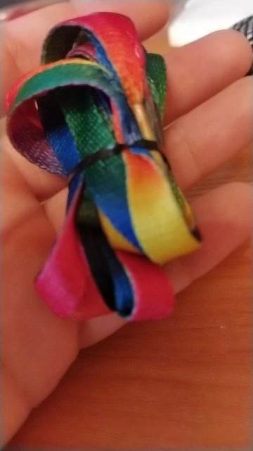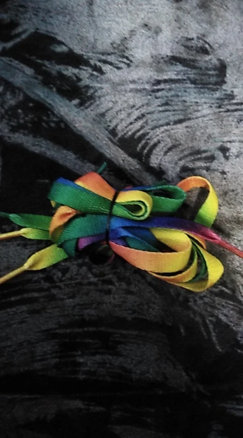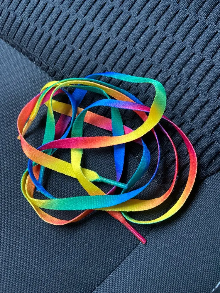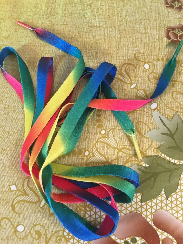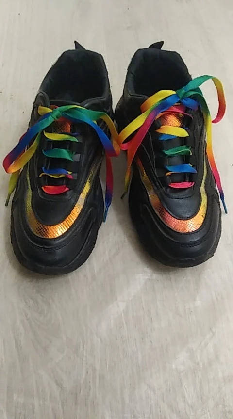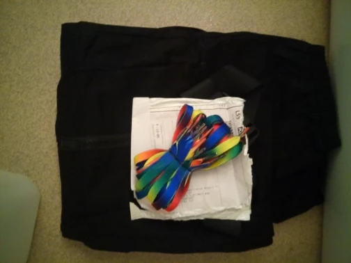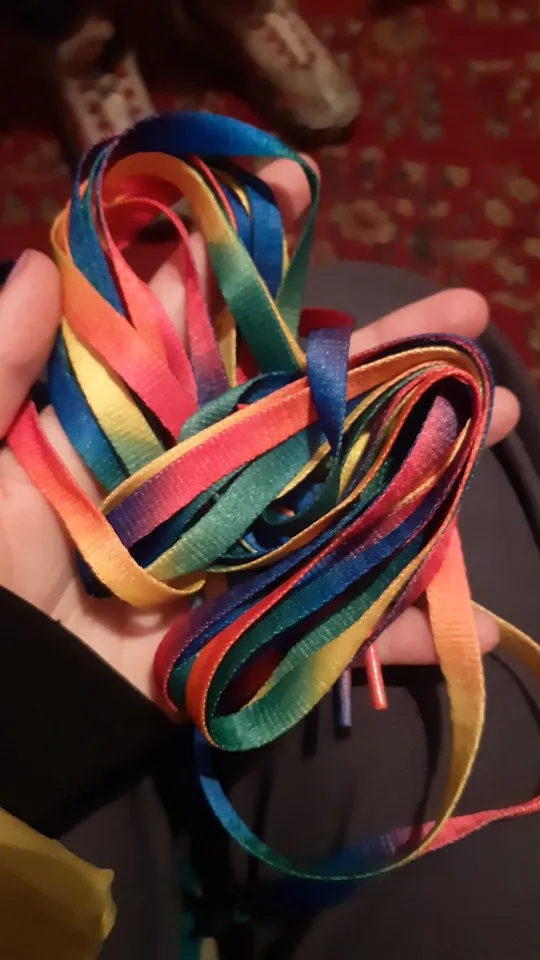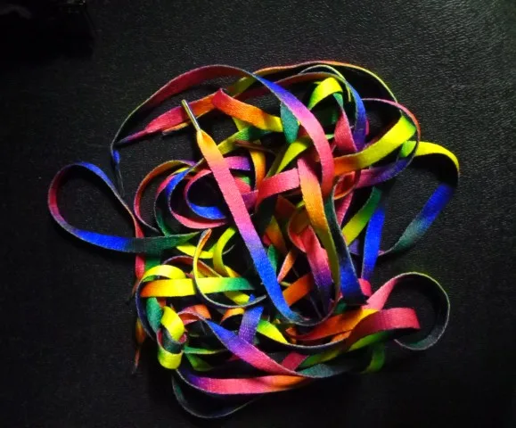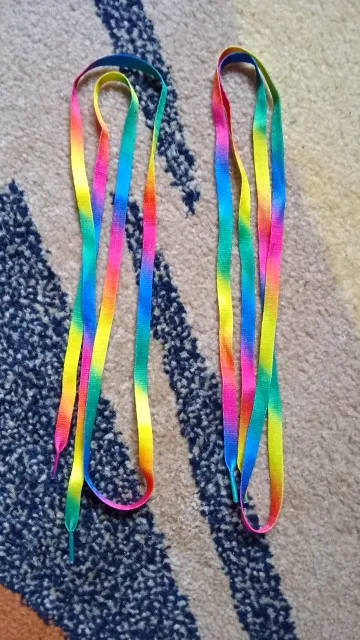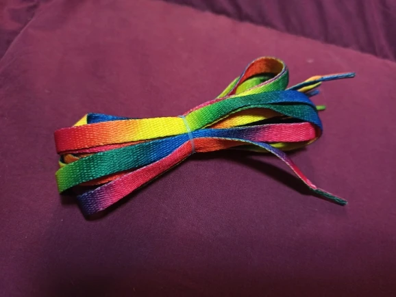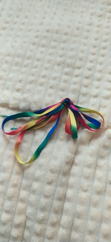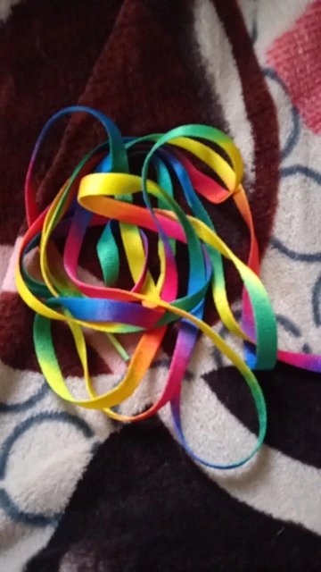 Шнурки в точности, как на картинке (здесь неудачное освещение, поэтому полностью нет цветопередачи). 2 пары разной длины упакованы в один пакет с пупыркой. Доставка очень быстрая - около 2х недель до МО. Забрала на почте. С продавцом не общалась, не было необходимости. Товар и продавца рекомендую. Спасибо за прикольные яркие шнурочки.