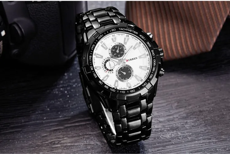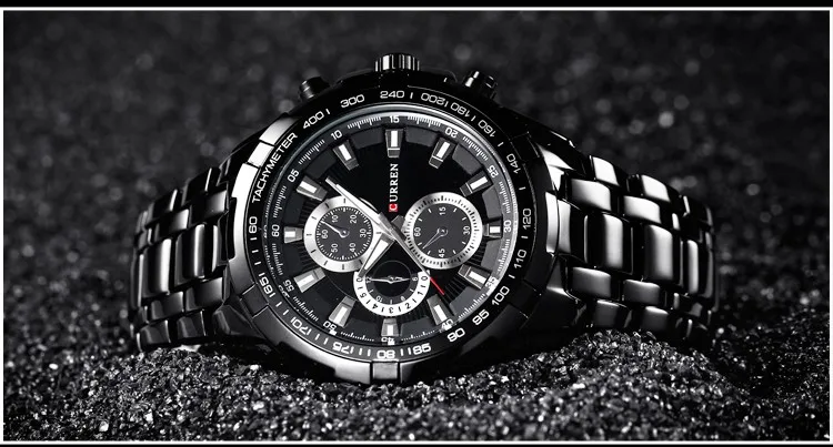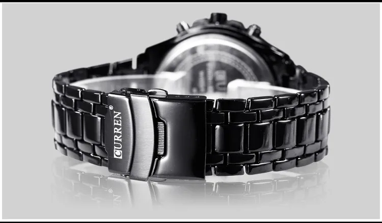 Мужские Аналоговые часы CURREN, черные, кварцевые, спортивные, со стальным ремешком, 2018