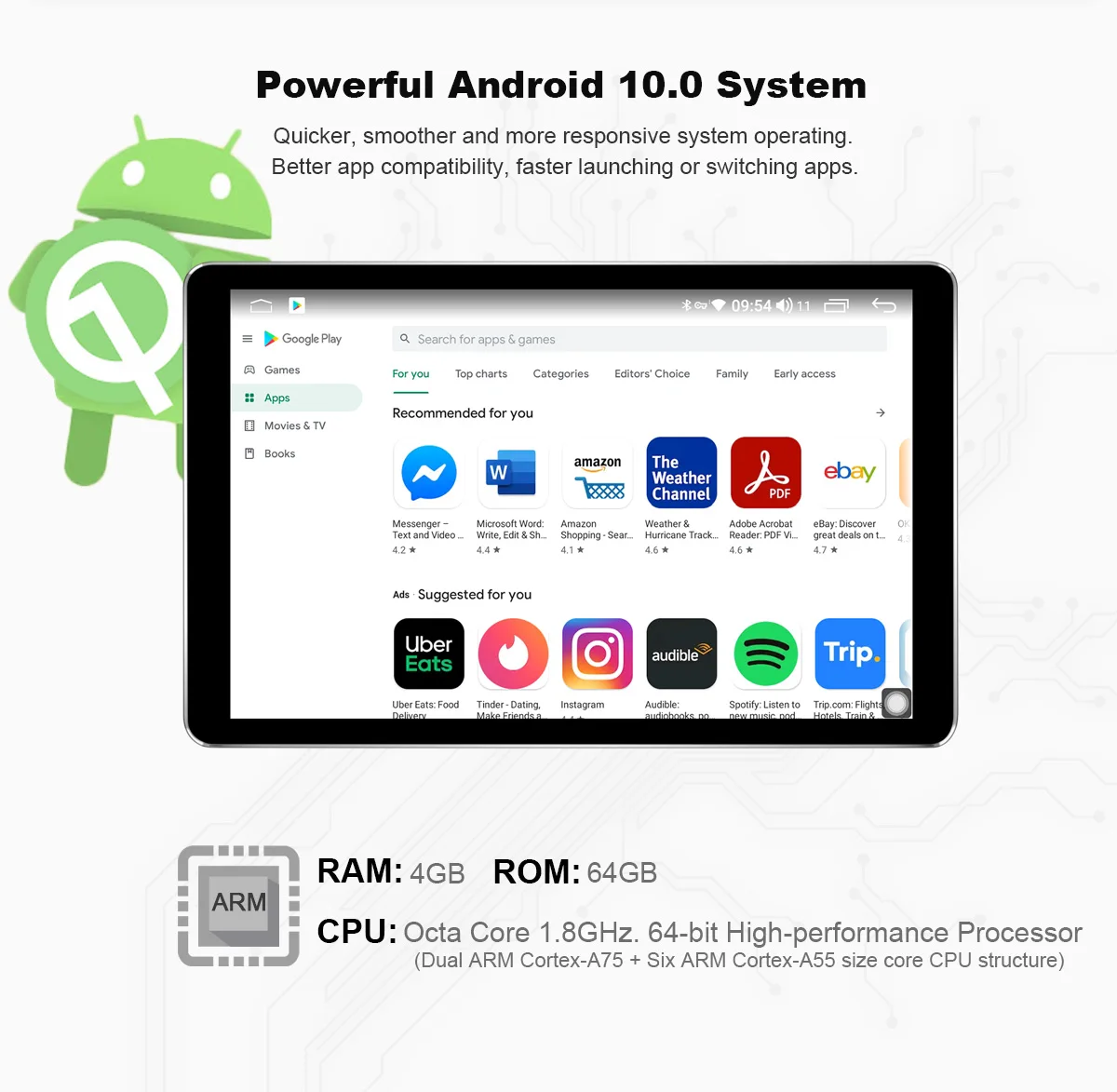1. Android 10,0, UIS7862 Восьмиядерный 1,8 ГГц Двухъядерный ARM Mali G52 614,4 МГц 8 дюймов 1280*800 IPS HD экран2. Отличная аппаратная производительность, 4 Гб RAM + 64 ГБ ROM, Восьмиядерный3. Интернет-развлечения, встроенный модуль WIFI * Модуль 4G, Супербыстрое подключение к Интернету.4. Поддержка Google Play Store, вы можете скачать множество приложений5. Поддержка послепродажной камеры заднего вида/DVR/OBD2/DAB +/TPMS, необходимо купить отдельно6. Поддержка быстрой загрузки, быстрый запуск радио7. Поддержка кнопок управления рулевым колесом (без Canbus car)8. Bluetooth для громкой связи, Синхронизация Bluetooth телефонной книги9. Встроенный DSP, сделать радио имеет лучший звук и более Регулируемый эквалайзер10. Поддержка беспроводной carplay и Android autoНовый блок JOYING теперь поставляется с оптическим цифровым аудиовыходом SPDIF * коаксиальным цифровым выходом. Для максимального качества звука вы можете подключить внешний усилитель/DSP к цифровому выходу SPDIF напрямую; Если ваш внешний усилитель/DSP не поставляется с входом SPDIF, вам потребуется подключить усилитель/DSP через FL/FR out и RL/RR out.