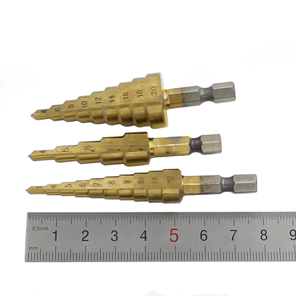 3 шт Многофункциональный HSS титановый шестигранный хвостовик конус ступенчатое сверло набор W/мешочек