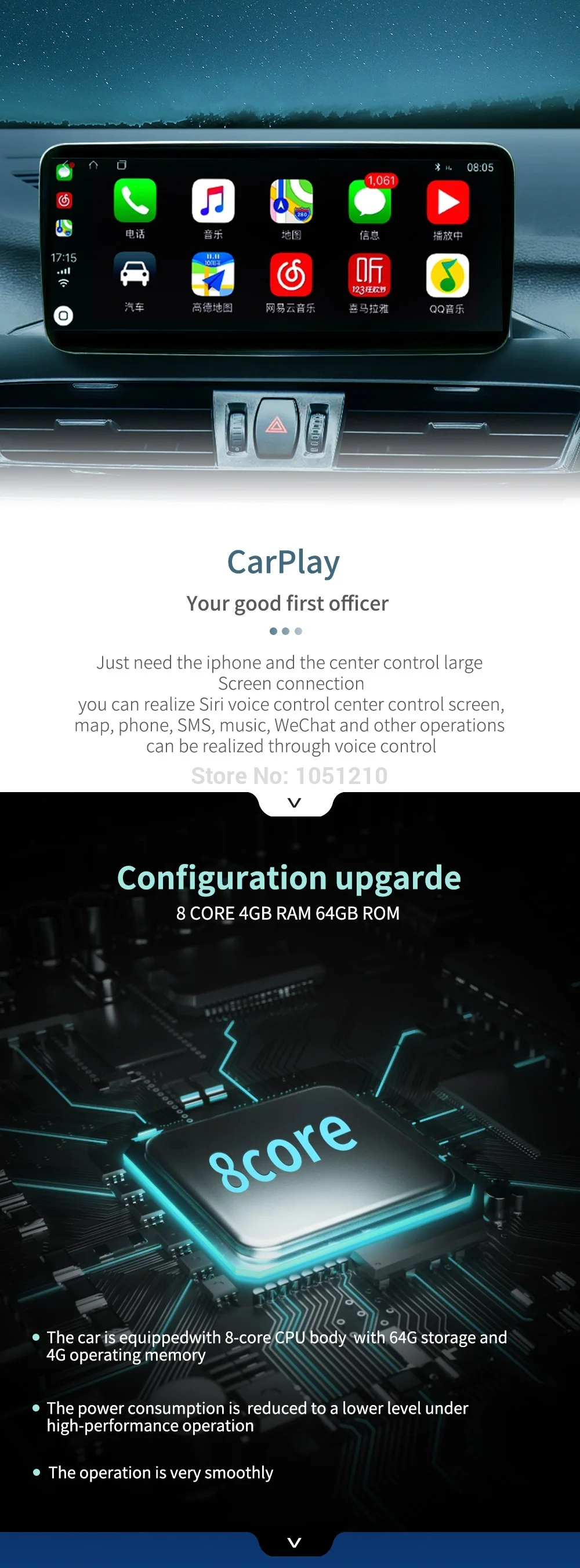 1. Поддержка операционной системы: Система Android 10.2. Поддержка 4 Гб оперативной памяти. (3. Поддержка 64 Гб ROM.4. Поддержка 8 ядер ЦП.5. Поддержка оригинального автомобильного интерфейса и интерфейса Android.6. Наш кабель подключен и работает, нет необходимости резать оригинальный автомобильный кабель.
