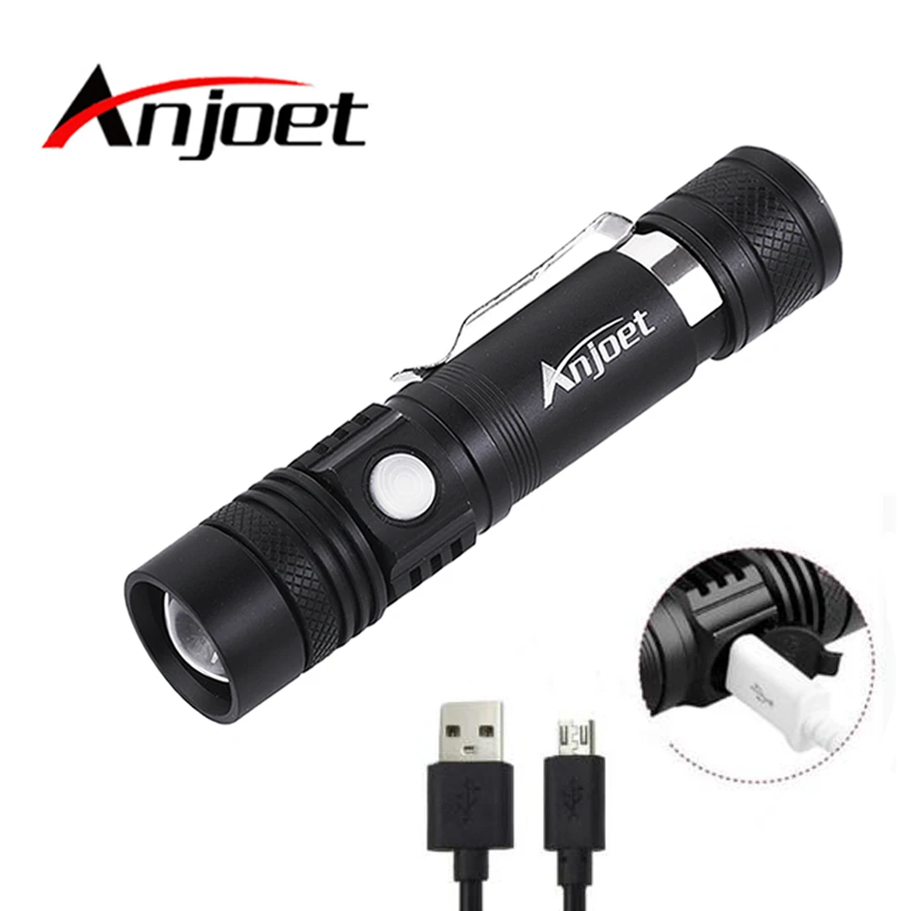 Anjoet супер яркий светодиодный фонарик USB фонарик светодиодный фонарик T6 светодиодный индикатор питания масштабисветильник 18650 перезаряжаемый + USB кабель