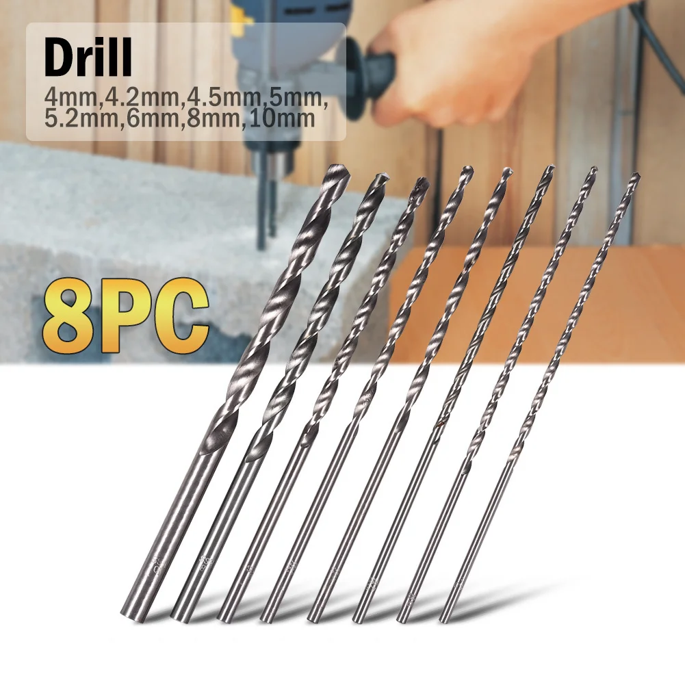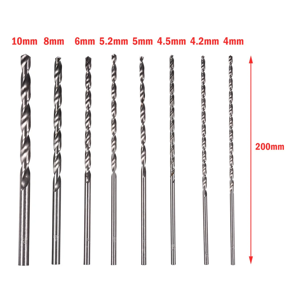 Параметры продукта:1. Материал: Высокоскоростная сталь;2. Размер: (прибл.)1) Длина: 200 мм/7,87 дюйма2) Размеры: 4 мм/0.16in, 4,2 мм/0.17in, 4,5 мм/0.18in, 5 мм/0.20in, 5,2 мм/0.20in, 6 мм/0.24in, 8 мм/0.31in, 10 мм/0,39 дюйма3. Применимый объем: деревообрабатывающее, пластиковое, алюминиевое сверление;Упаковочный лист:Спиральная дрель * 8