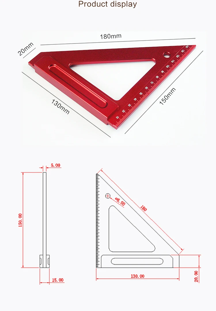 Метрическая треугольная линейка из алюминиевого сплава, 6 дюймов