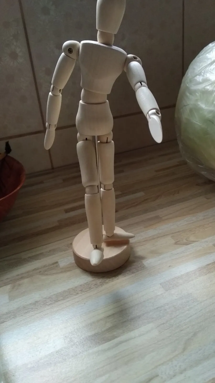 Пришла быстро, сама кукла деревянная, гладкая, занозу не посадишь))) По сборке все хорошо, хотя в некоторых местах видно немного клея. Сгибается неплохо, но могло бы быть и лучше. Из минусов наверное это то, что-то плечи двигаются только по окружности, ну и мне показалось, что кисти рук и ступни немного длинноватые