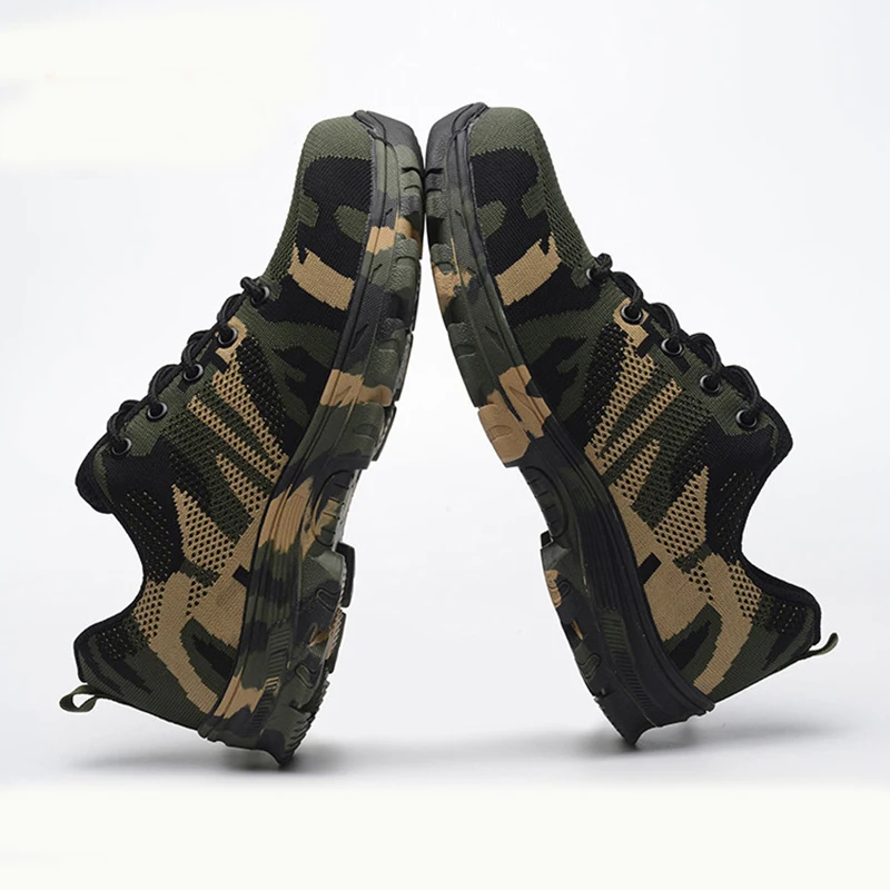 Мужские защитные рабочие ботинки, камуфляжная Весенняя дышащая сетчатая повседневная обувь со стальным носком, Мужская Рабочая защитная обувь