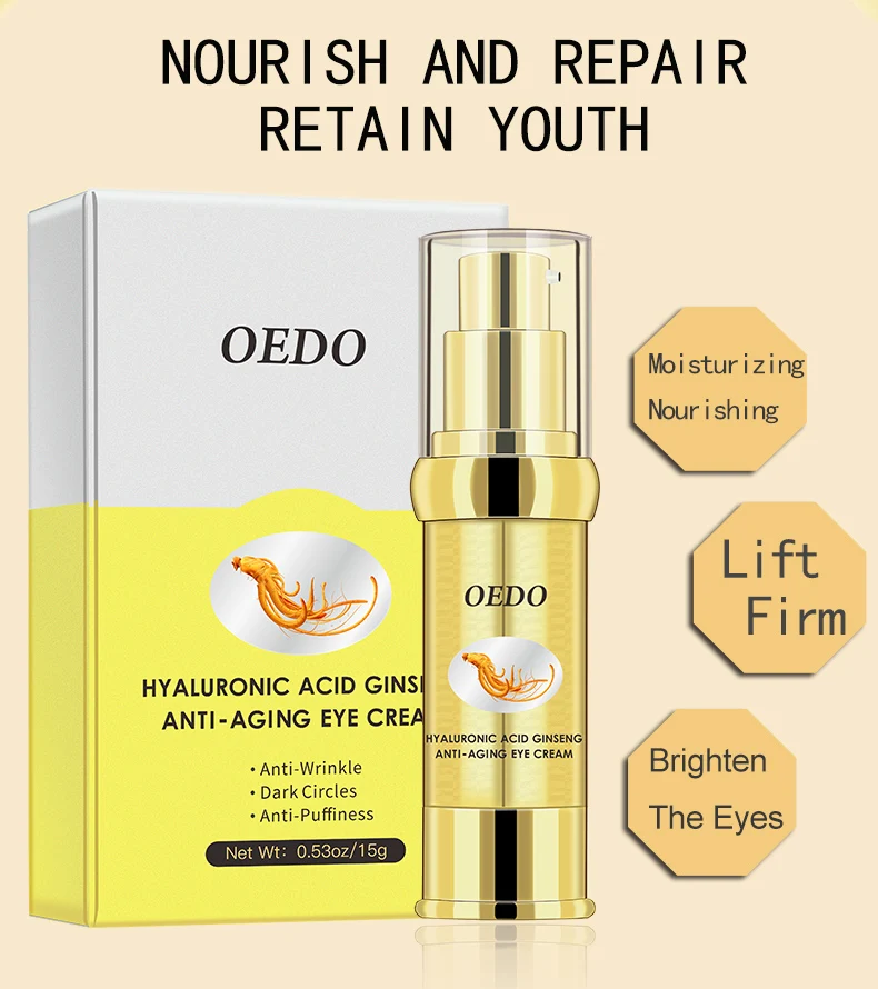 Крем для кожи вокруг глаз, с гиалуроновой кислотой, женьшенем, уход за кожей, против припухлостей, темных кругов, антивозрастной, увлажняющий, отбеливающий