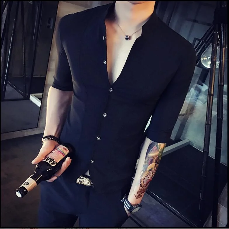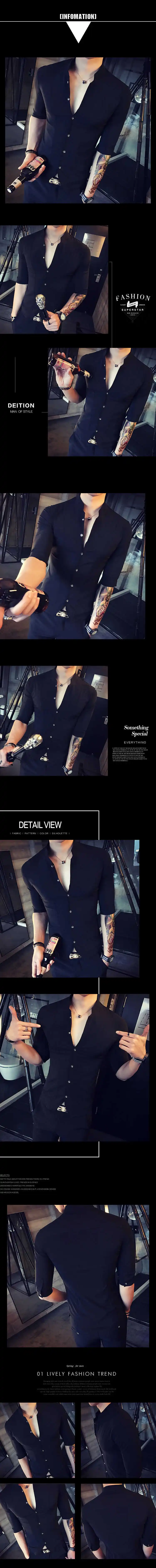 Мужская дизайнерская приталенная рубашка с воротником-стойкой, стильная рубашка с коротким рукавом в китайском стиле