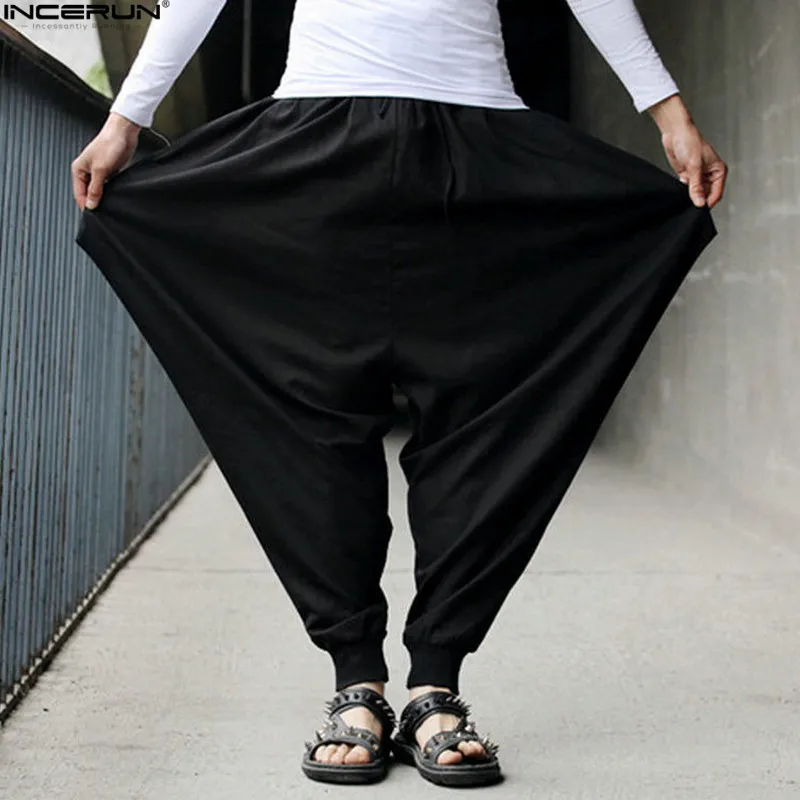 Брюки INCERUN мужские с широкими штанинами, мешковатые брюки, льняные повседневные штаны в японском стиле, шаровары в стиле Хакама, 5XL