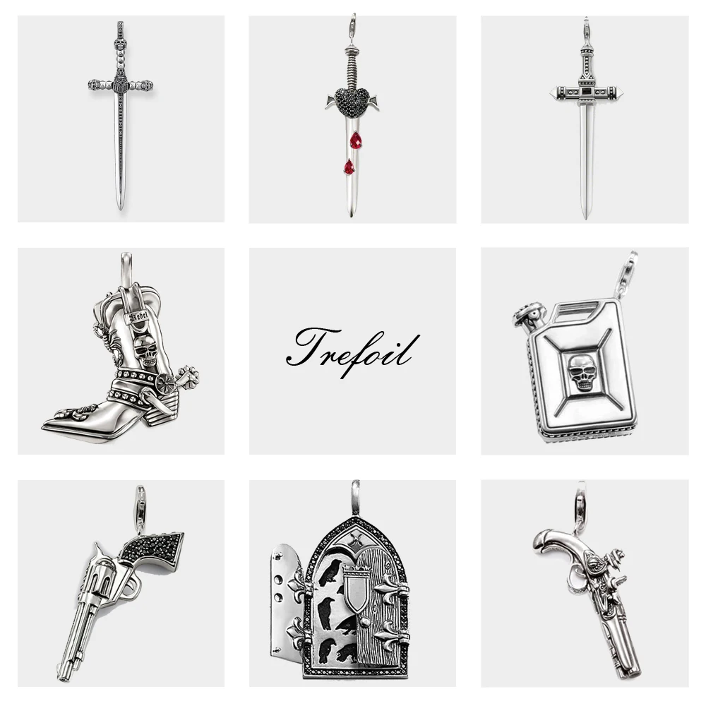 Подвеска в стиле панк с черепами и пистолетом в байкерском стиле, новая бижутерия, ожерелье из стерлингового серебра 925 пробы, хороший подарок для мужчин и женщин