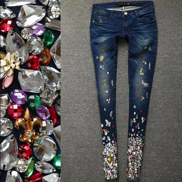 2021 весенние модные женские роскошные стразы бриллиантовые Джинсы женские Стрейчевые размера плюс узкие джинсы