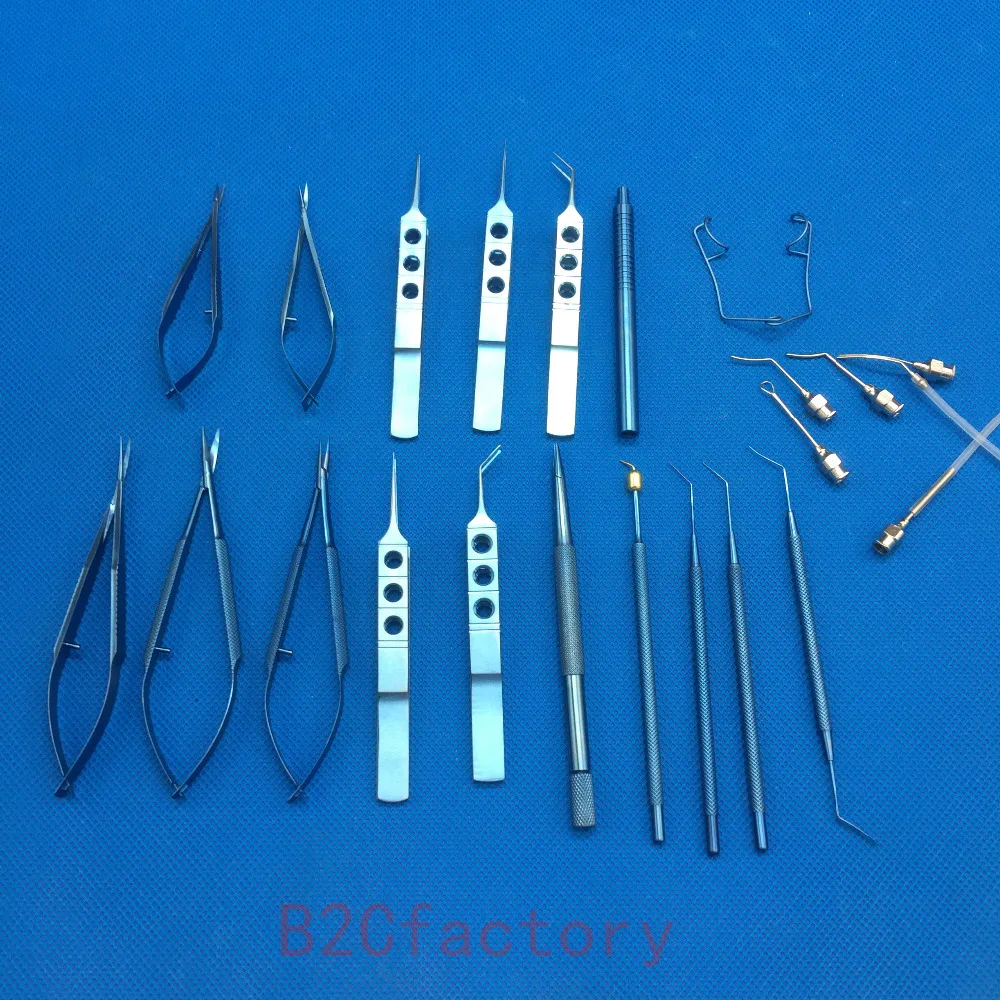 Набор для катаракты из титанового сплава, ножницы для глаз, офтальмологический пинцет, хирургические инструменты для глаз из нержавеющей стали, 21 шт.