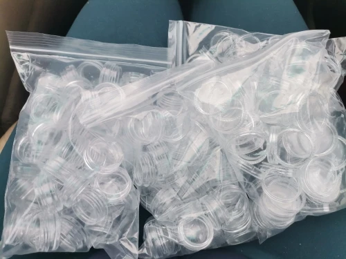 Пришло все быстро в пункт выдачи Ситилинк. Пришло 51 шт за это +1звезда. 4 крышки с очень глубокими царапинами. Девочки, если вы планируете хранить в них бисер, сразу предупрежу.. Пакетик самого мелкого бисера 5гр не влазит в эту баночку