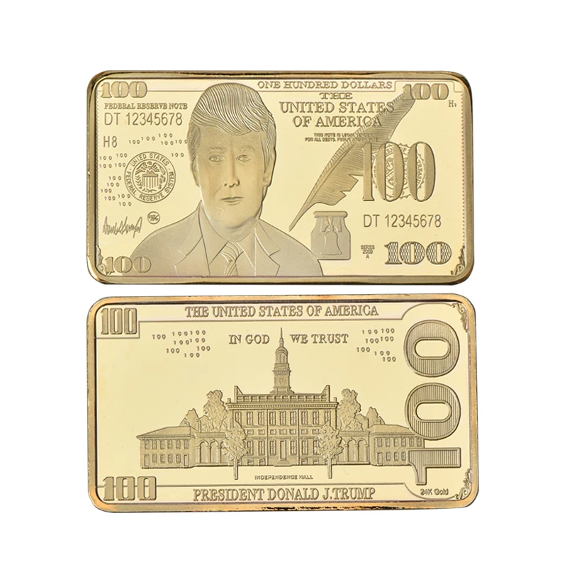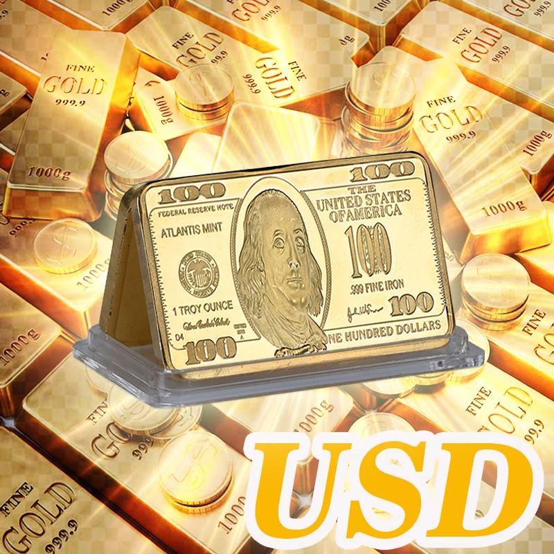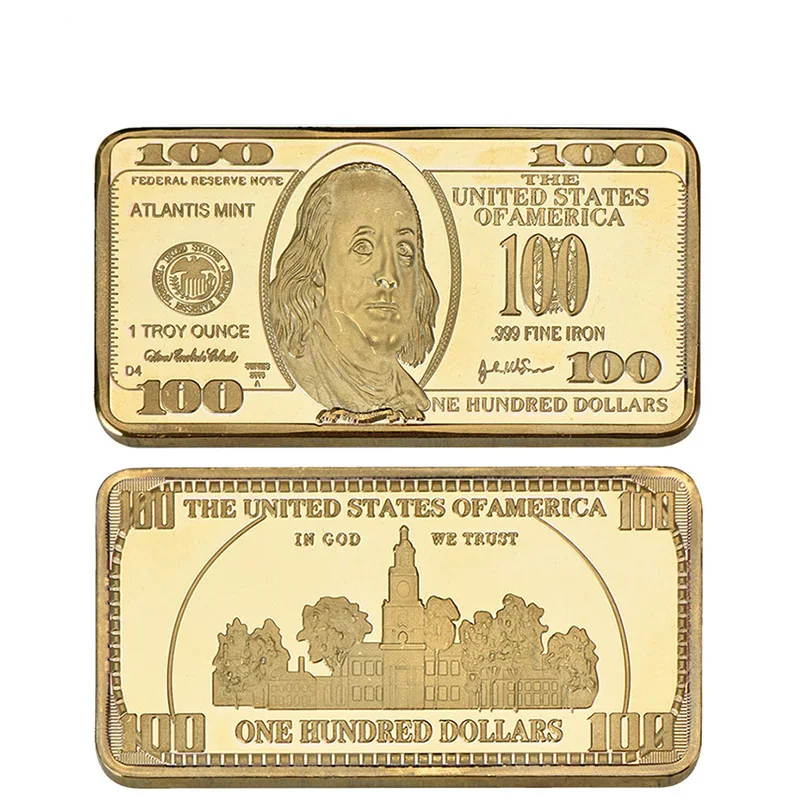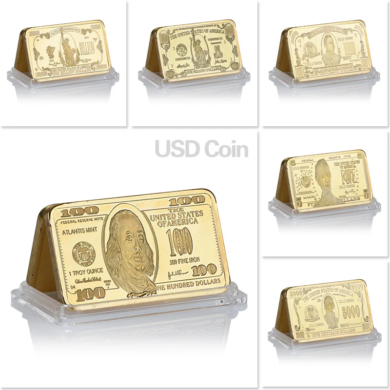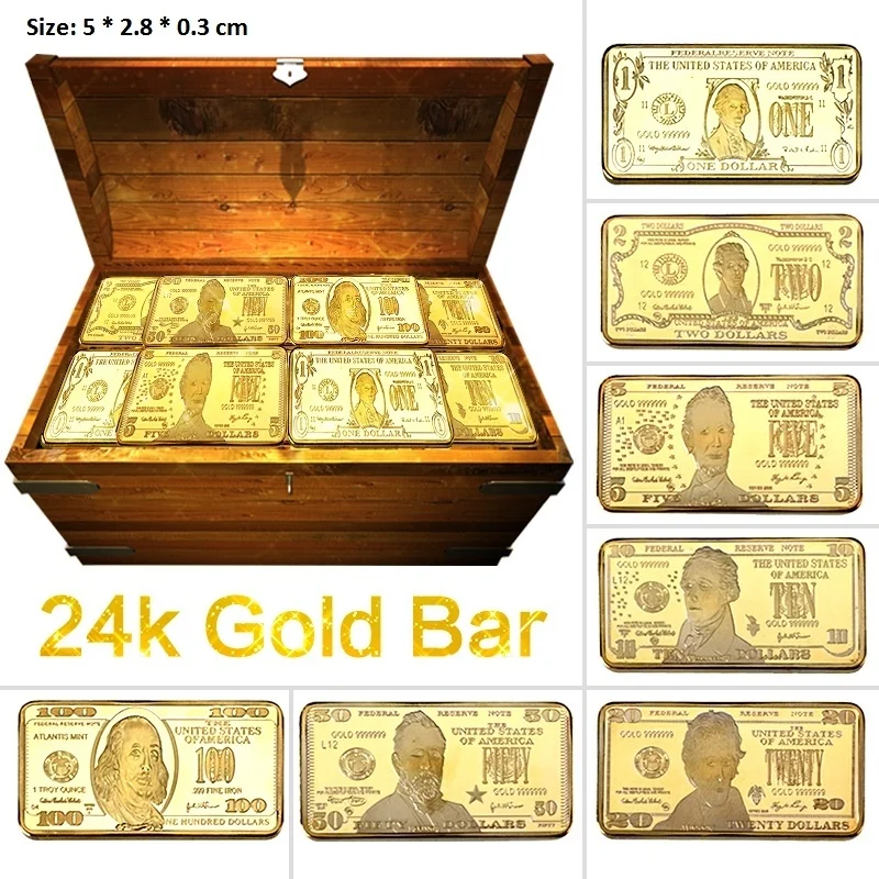 Набор металлических сувениров, позолоченные 24 карата, с монетами, в виде доллара США, золотой плакированный слитков, коллекционный деловой подарок для мужчин